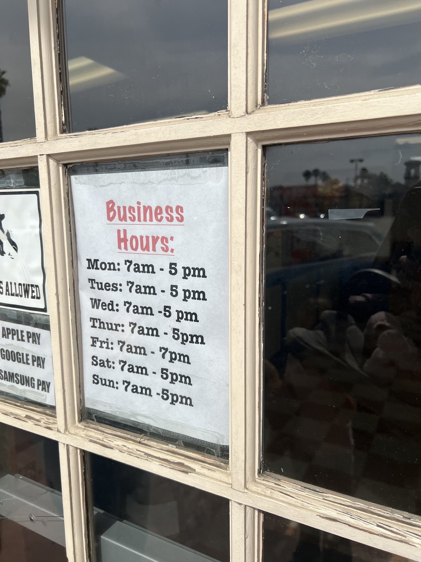 Read moreGot to say the best hidden gem in Moreno Valley. Love going in the morning with the family to get service by angie or raquelle, they are absolutely the best there with their positive vibes. Only complain i got is, for dinner the other night and this girl with glasses helped us out. I heard the boss call out Kimberly, so figure that’s her name. She has the longest fake nails that just really got me under my skin, especially handling my food. No fingernails in my families food, puleeze! I just did my order to go, because long nails that are size of your thumb and so pointy is just not a right appeal for my taste and her attitude is just not the right fit for a place for hospitality. I give 5 stars because this little pop mom shop has the best breakfast & breakfast service!! Ask for ANGIE or RAQUELLE!! Leave some cash for these girls because they don’t gotta a line for tip on card & they be...
