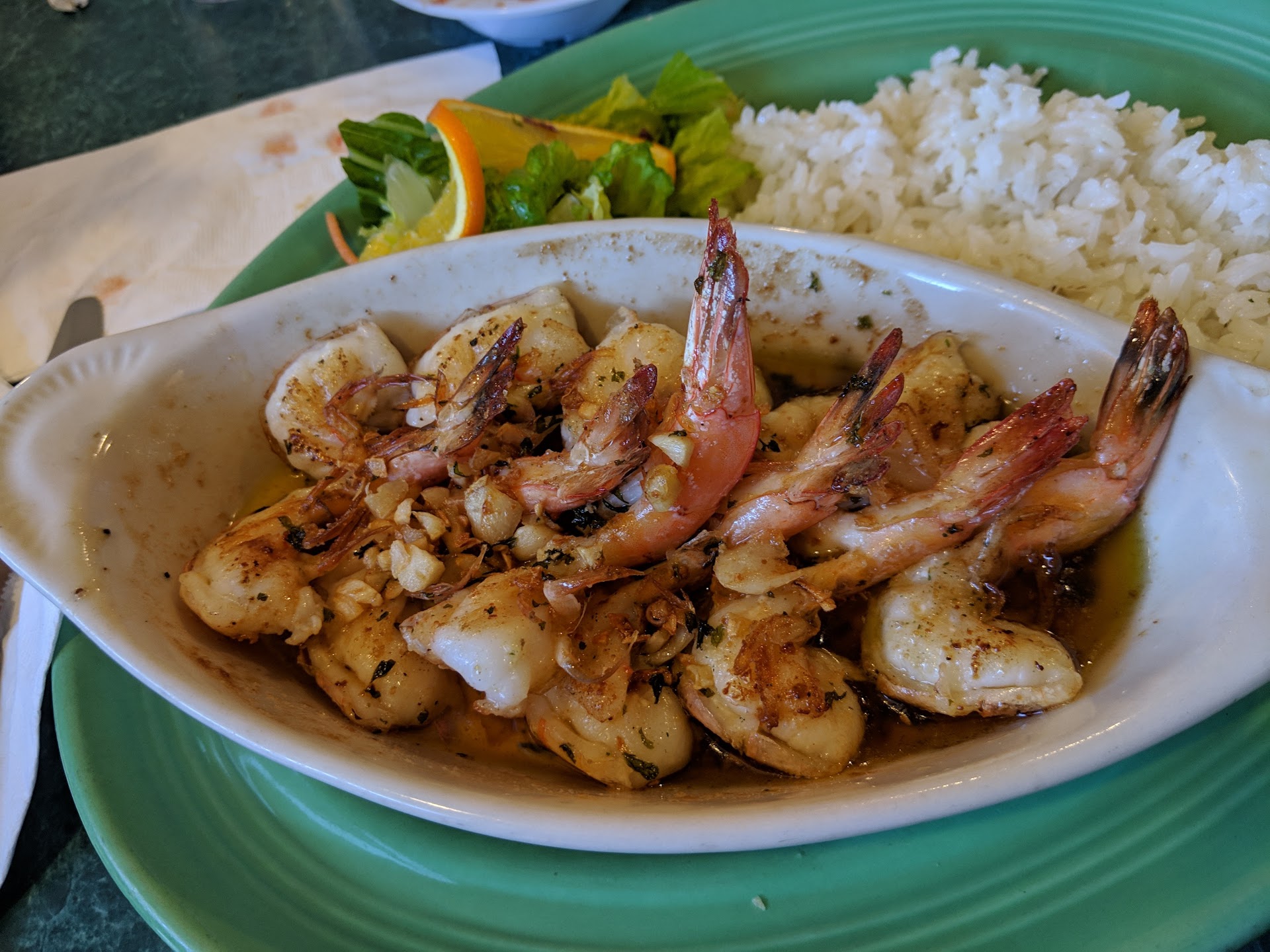 I ended up getting Camarones de ajĂł (shrimp cooked in butter garlic sauce) with a side of rice. Kid you not, hands down, my favorite shrimp dish. Butterflied shrimp erfect seasoned with the right amount of salt and chunks of garlic served in it's own dish. The side of rice was fluffy, and similar to that of a pilaf without the salt.