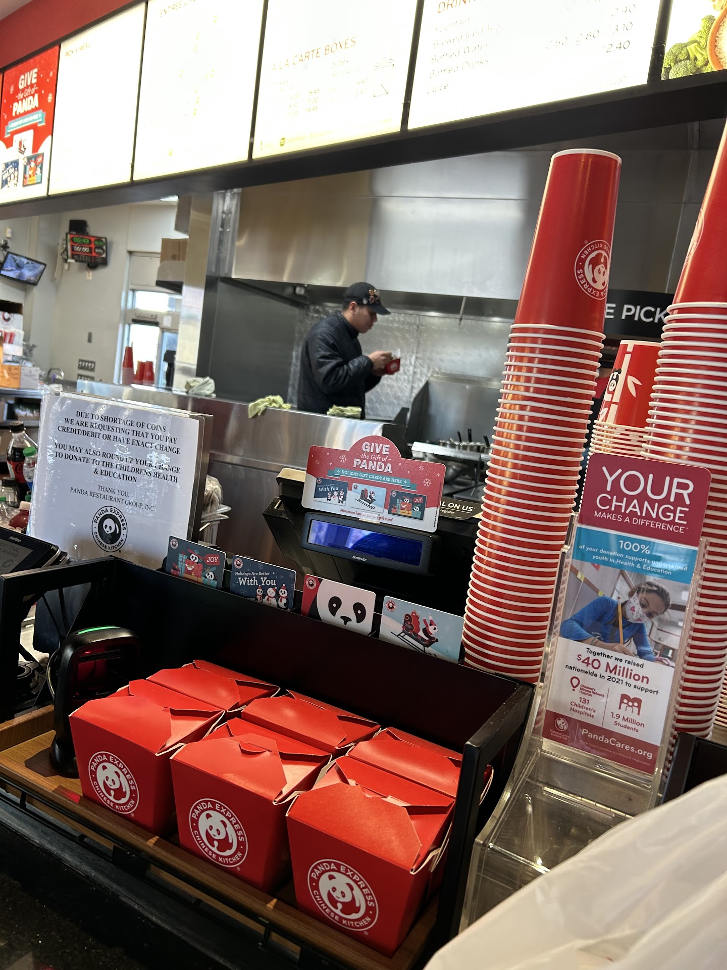 Today was not a good day to visit. I ordered a chicken mushroom bowl w/white rice. I got chicken mushroom bowl w/fried rice. I'm not kean on their fried rice because it is usually dry. Today was no exception. However, that being said; the kids that work there are usually very nice. I paid with a $20 bill. I got the paper money back. But, when I tried to get the coin money, the girl that helped me apparently didn't hear me, or wasn't paying attention to me when I told her to wait just a minute. I showed her my right hand, which is in a cast, and before I could get my left hand up to accept the change, she closed the window and put the change in what appeared to be a tip location as she turned her back to talk to her peers. If it had been all of my change, I would have waited and maybe even have honked my horn. I was tired and didn't want to cause a scene, plus there were 2 other cars waiting behind me. If I had known my ordered wasn't correct at the time, I would have sat there for both my change and had my order corrected. I have been to this particular Panda Express over 10x within the last 6 months and order the same meal each time. This was the first time I was NOT satisfied with my order nor the competience of the staff. YOU KNOW I WILL CHECK MY ORDER in...