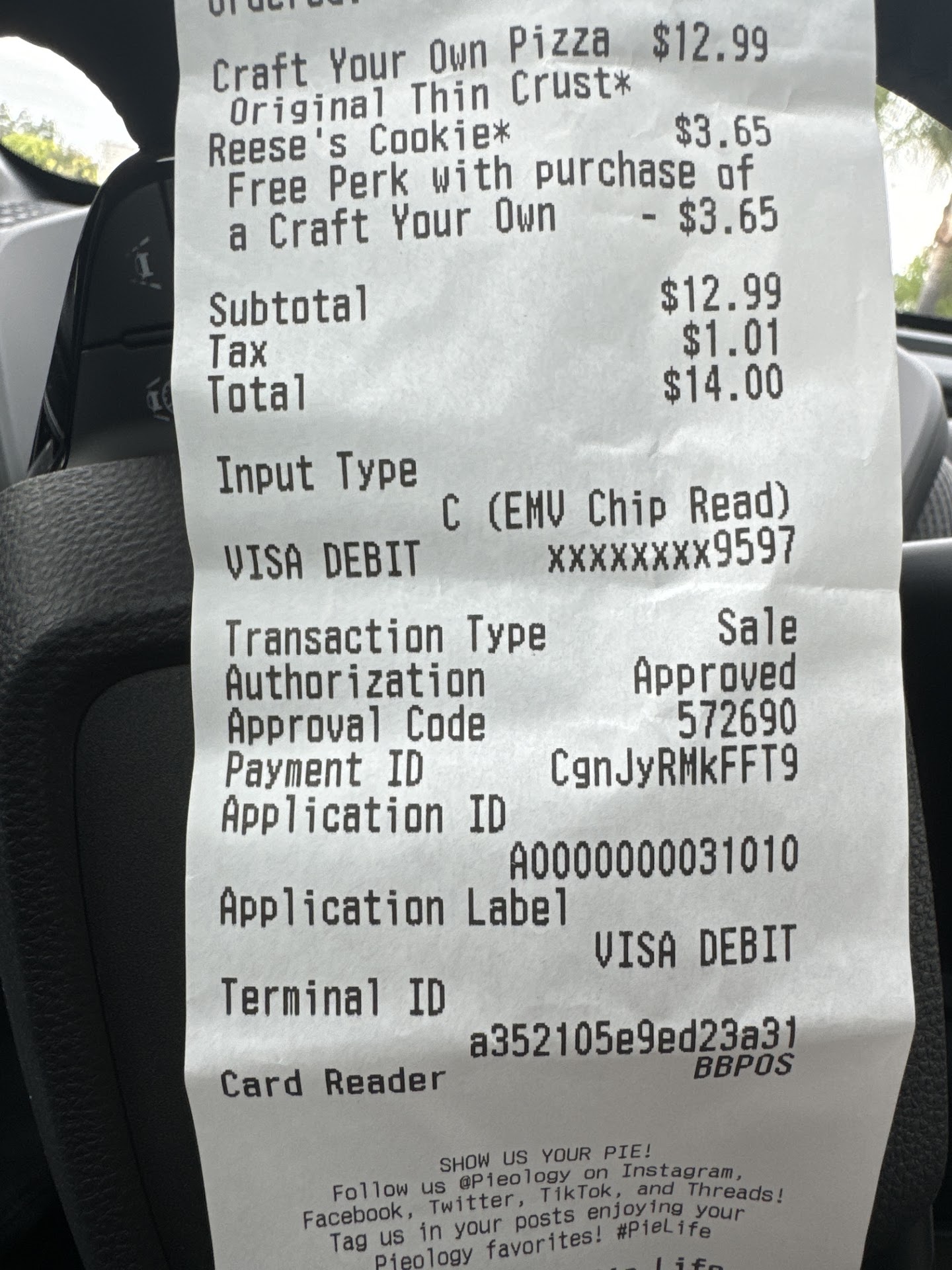 The other end of the disappointment was the fact on the walls they had signs for a "family" deal for $23.95 which was 3 personal pizzas and a dessert pizza. Well, we noticed it after we were done ordering and sitting down. We ordered 3 pizzas, no dessert one, and 3 regular drinks.. Did we get offered a family deal? Nope.. In fact we spent more and got less. Just overall not as good as the others.. Won't bother with Pieology, I'll stick to Blaze or MOD.. and I get very similar creations, so I know the...