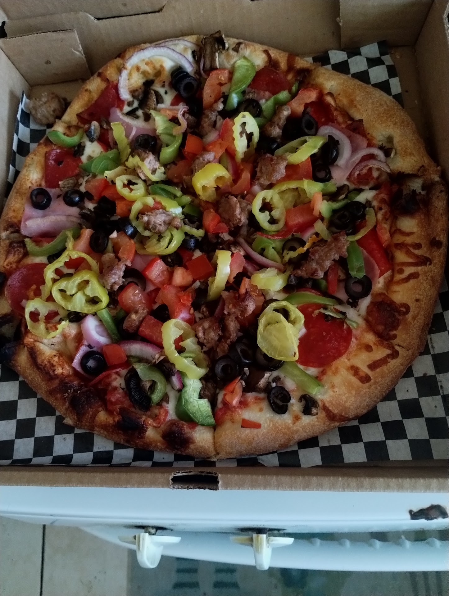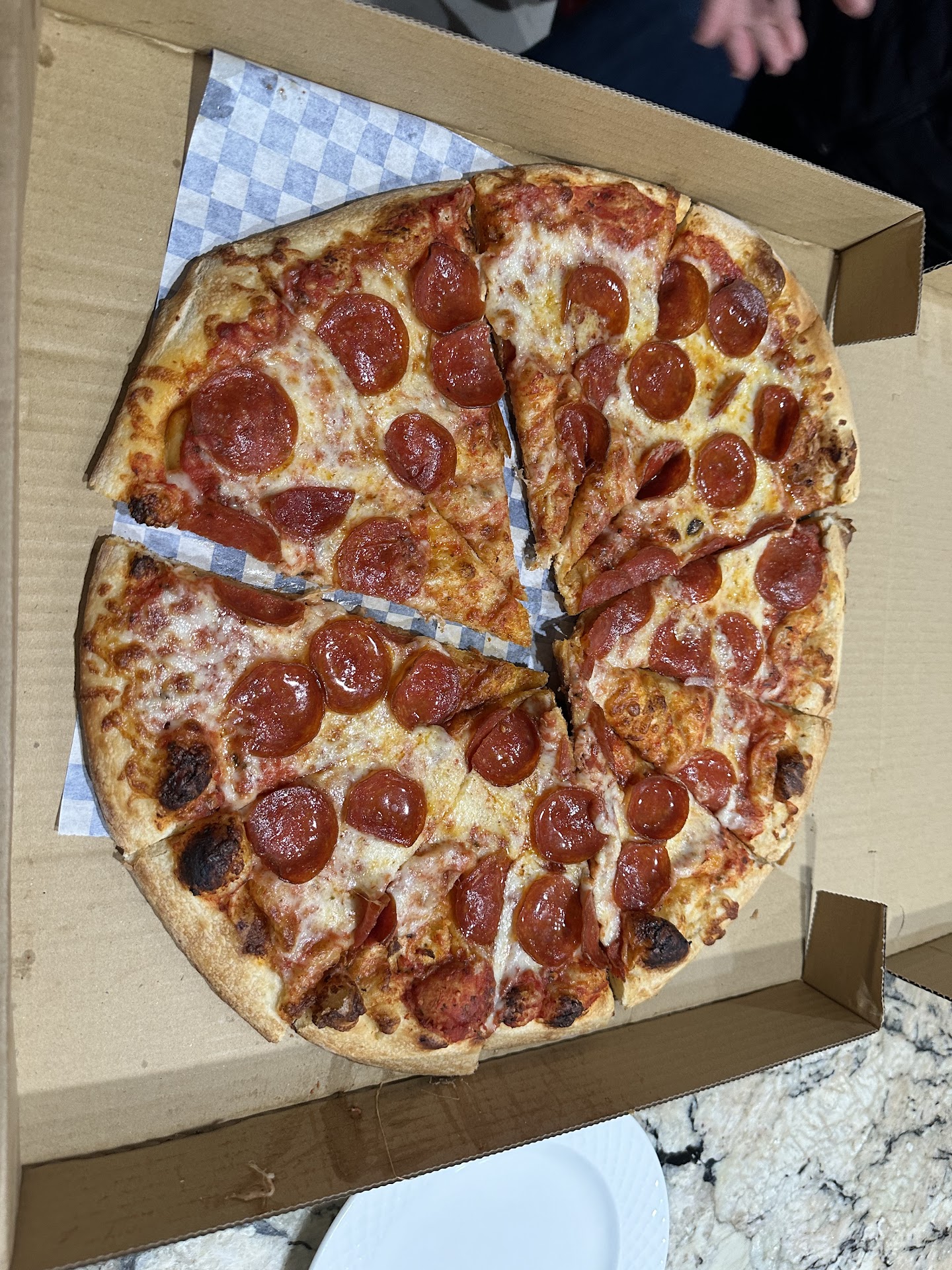 Honestly we loved it - small hole in the wall. There's one table with 2 chairs in the small area you order/pick up. There's delivery for a fee also , but we were close by. We called ahead. We were new to the area and ordered separate pizzas, the man on the phone told us if we ordered two of the same pizzas, but a bigger size, it'd be a few bucks cheaper. Wasn't the few bucks off, was the thoughtfulness. Food was ready when we were told. We had a stop to make , so idk of that was the reason the bottom of pizza was a bit soft- but put it on a pan for a few minutes and the gentle crunch, great flavors made it the best pizza I've had in a while. And omg must get the garlic knots and churro fries (literally fry size but so good and you get quite a few) we'll...