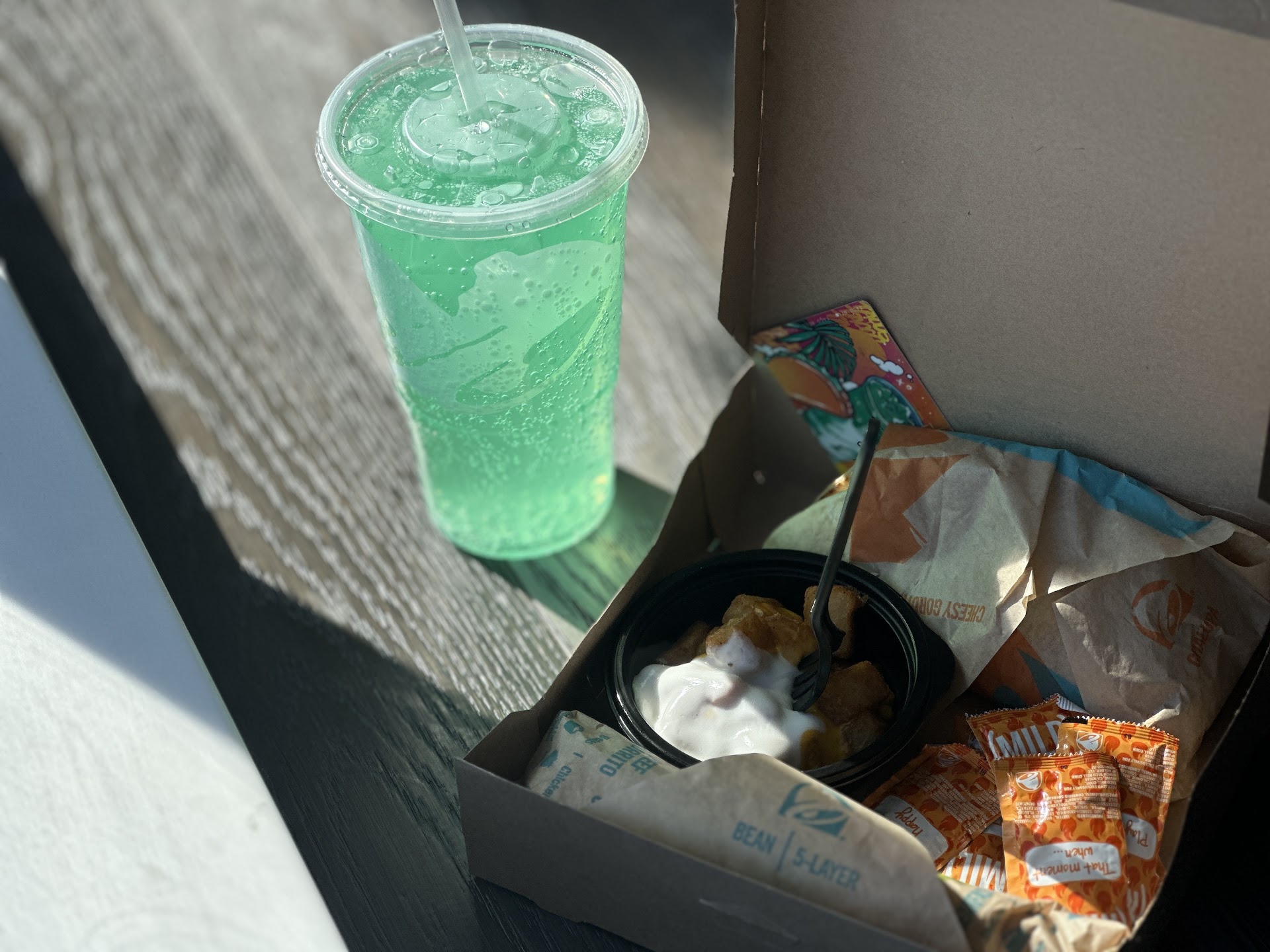 The staff? Oh, they’re the heartbeats behind the counter, dishing out not just meals but smiles, making every interaction feel like you’re the star of the day. And let’s talk about the meal that cradles comfort in every bite – the Build Your Own Cravings Box. It’s not just food; it’s a craft. The Cheesy Gordita Crunch harmonizing with the Bean Burrito, while the Cheesy Fiesta Potatoes and MTN DEW® Baja Blast® perform a culinary ballet, leaving my taste buds in a standing ovation.