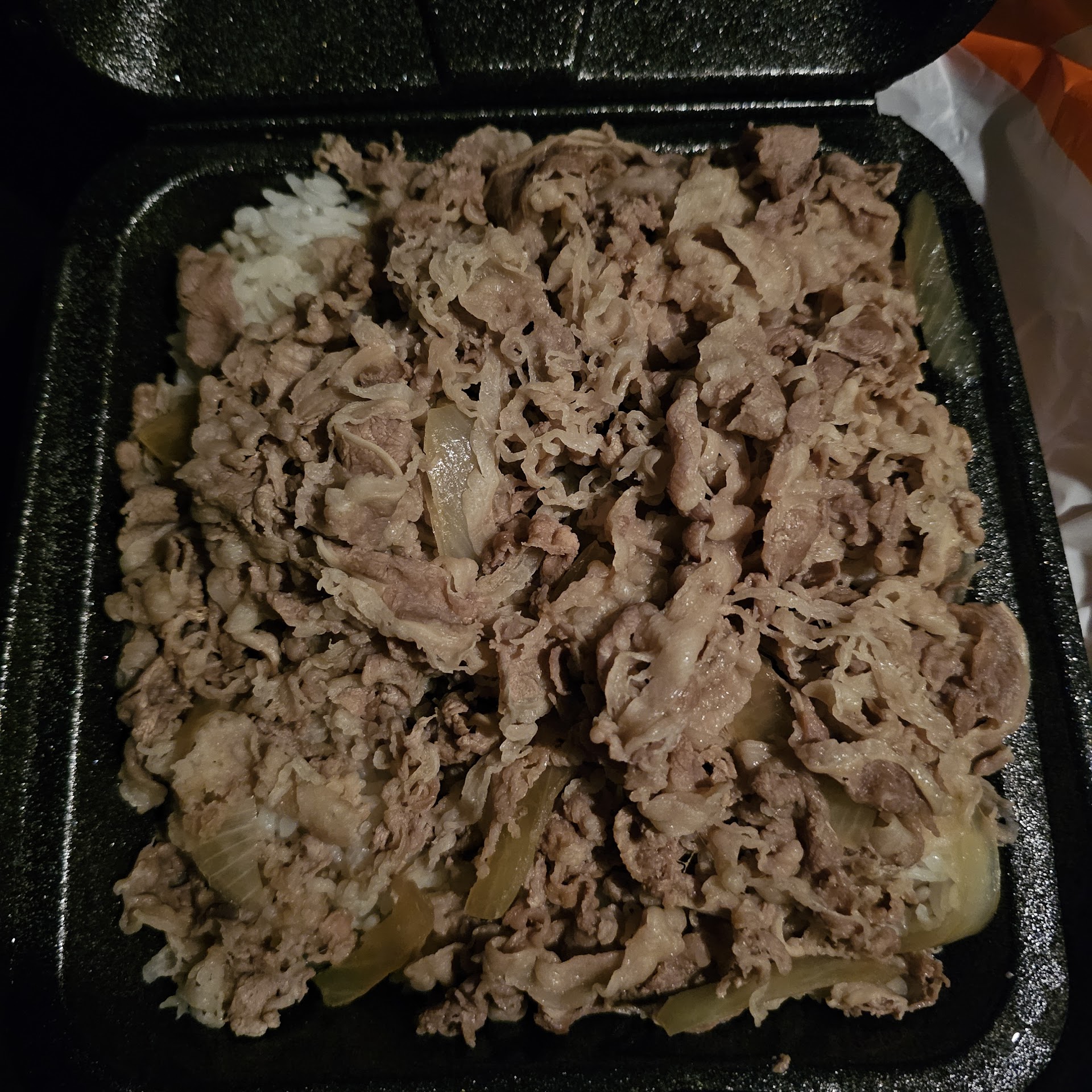 I usually get the large beef bowl, with regular white rice, and occasionally get a newer item (for me - it may have been on the menu for awhile), which is the Udon noodles. Very tasty, although a bit dry (not sure if maybe that's how they're supposed to be 🤔🤷♂️), and the portion, or lack thereof, leaves a little to be desired, which is why I only get those, like when I'm craving them.