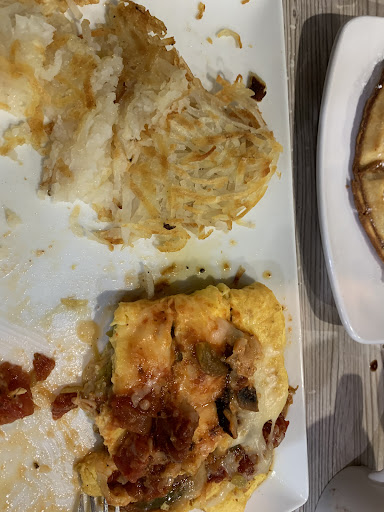 Read moreThe food was tasty, the staff was friendly, the place is clean and very welcoming...unfortunately...the service is horrible meaning, there is a lack of staff, and the lack of good customer service. I hate to give this place a bad rating. First, the staff at the front door tells me there is a 45 min. wait for 2 people (cool, I'll wait) waited in my car for 20 min., come back in and the staff tells me she called me 15 min ago..what?! Okay fine, ill wait another 25 min. I then waited another 25 for coffee, 30 min. for food, gobbled my food! (30 min), waited for refills, 15 min., waited for our check 20 min., waited for the staff to come back to get my card 20 min. The staff finally took my payment, they forgot to give me my card and waited another 20 min. for them to realize that they did not give me my card back. You may be thinking "why didn't you just flag someone down?" I did in the beginning of my waiting trajectory" and the staff disappeared and did not help. The staff needs a lot of training in customer service. The staff walks around with horse blinds. I will never go back to this place. Disclaimer- it was Memorial day but the restaurant was not packed. To add, they were not serving waffles today! Lol, go figure. This bad customer service is a sign of lack of good leadership. I hope they...