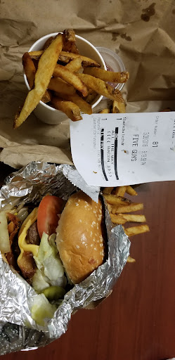Read moreWhen I Go there I Leave Satisfied. I Know I Got My Money's Worth. I Like That They Have a Tip Jar. They Work Hard. Food is Made Well. Also I Enjoy the Music. Bathroom are Handicap accessable Large Enough an Very Clean. You Go Up to the Counter to Order. Your Number they Call is on Your Receipt. Remember your Food was Just Cooked. So When You UnWrap It Give it A Little Time So It is Not to Hot For Your Mouth or Your Childrens Mouths. Oh an They Have a Drink Machine. Sometimes Parking Can Be a Little Crowded. There is a Big Parking Area Behind Five Guys Enjoy Your Tine There. Average Time There I Would Say is Around 35 Min for Myself I Usually Go With Someone...
