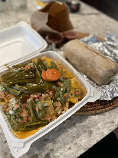 It’s a sit down restaurant. I went with three other people and all of us would go back again. I had the vegetarian burrito, no sour cream and added extra cheese. The burrito was large (not huge), but my first thought was “there is no way I’ll finish this whole thing in one sitting”. I took the foil off, cut it in half and took a bite. My first thought was “oh wow…this is delicious”. I devoured the first half and to my surprise…I ate the second half as well. It was so freaking good!!! I want to go back and get it again! The enchiladas (green sauce) also looked tasty as well.