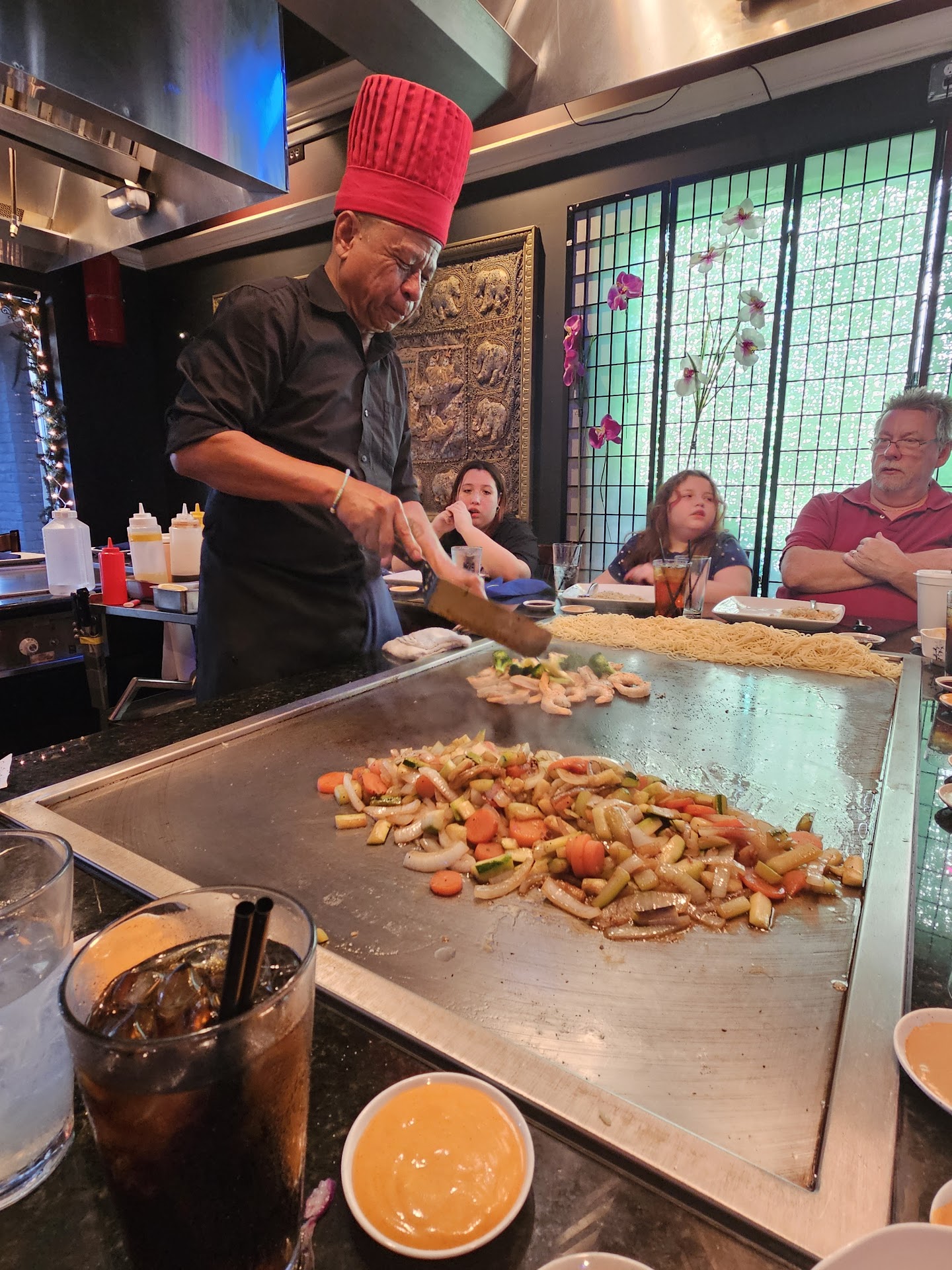 From the moment you walk in, not only are you greeted by warm smiling faces but the atmosphere is very fun. From the many colorful items hanging from the ceiling to the Asian decor and theme ✨️ it feels very vibrant from the moment you walk inside. We sat on the Hibachi side, which continued the colorful decorations, but we're able to see the many Thai dishes that people had ordered on the other side. The smell when you walk in had aromas of spice and seasoning you could smell the thai curry and see the portions were generous. Our family of 10 fit comfortably around our open grill table and were greeted immediately for drinks. After that, we ordered our appetizers and meals, and very soon, our chef for the night Pee-Wee came to the table. From the moment he greeted all of us, we noticed first a contagious smile and laugh that was present the entire experience. He was so inviting and pleasant (especially with the little ones), and we enjoyed his many jokes and pokes at us during our meal. Pee-Wee shared that his family was from Laos, and he loved cooking Hibachi and had done it for many years. He was one of the most genuine staff I've come across in a long time, and his playfulness with other employees was contagious as well. The entire restaurant seemed to carry his smile and laughter around the entire place. They even invented 🤣 their own dinner language and entertained our little guests teaching the words and phrases to say. I ordered the Hibachi steak and chicken a combination plate and when I tell you Pee-Wee made the most DELICIOUS medium-rare filet I've had in a long time, I never picked up a knife the steak separated with my fork. My steak was so good that I even shared with 4 other people at the table as I couldn't believe how seasoned and tender the beef was. We had the traditional accompaniments with dinner but something we didn't expect was Pee-Wee letting us try all 5 sauces we could have with our meal and making sure we took our time deciding what sauce would be our favorite. The mustard, teriyaki, shrimp sauce, and ginger were so good I couldn't stop talking about them. As dinner 🍽 ended, we were almost sad to leave but knew as it ended that we would be back as there were many items we still wanted to try. If you want something different but not unfamiliar, give them a try. I can't think of any reason that you wouldn't find something on the menu even if you're a first-timer. We couldn't stop saying thank you leaving this Birthday dinner and the prices are unbeatable compared to mang similar places you already dine! Thank you to all the staff for making this Birthday even more special, we will be back to...