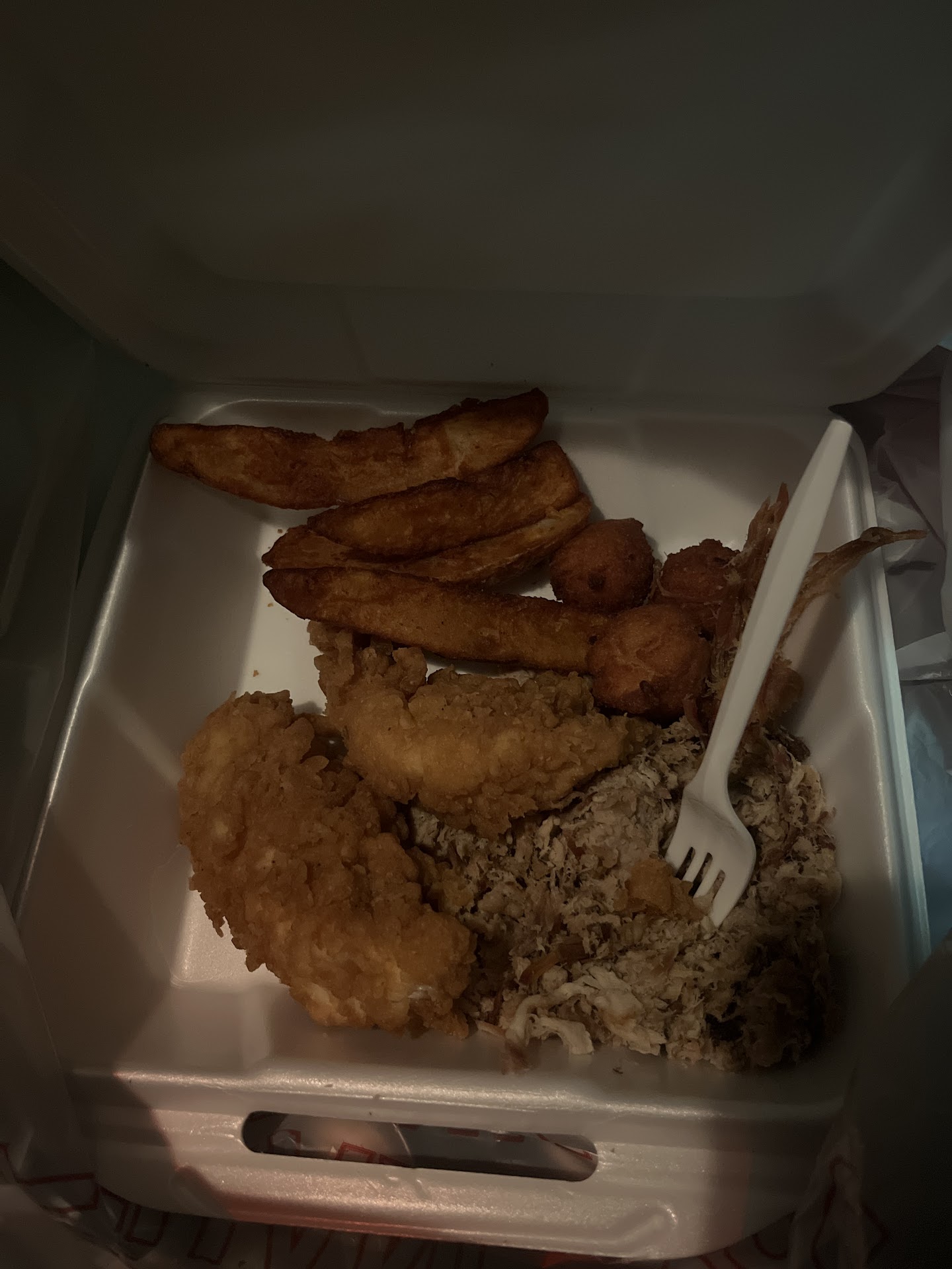 Read moreLived here 15 years and never had tried Butch's chicken tenders. (Think I have only been to the drive-thru once many years ago-and it took forever and was pricey so I never returned) Been wanting chicken tenders for a while now so decided to try their curbside ordering. The ordering itself was easy. Ordered 8 tenders and added 1 more... and potato wedges. It said we would have it in 10 minutes. We waited and waited... employees flying thru the door to talk in the parking lot and take their smoke breaks. They saw us waiting there and just ignored us. Then they all seemed to walk off and leave, but one lady stayed inside to take care of the drivethru window. We looked and it was 37 min, so my husband decided to go in and see what was going on. There sat our order. For who knows how long. She did explain there was no honey mustard, so we get that part. No apology was made about our food sitting, but the poor lady seemed at the end of her rope from everyone leaving. But when we open it...it is missing the extra tender and the wedges were fries. Food was like lukewarm. The tenders lacked any flavor and were greasy. So...needless to say - we won't be coming back. If you are local or just passing thru...save yourself the time and sadness and just go to Carolina Legendary Smoke. And no, we aren't related to or have any friends who work there. The end. PS: I would like to note our 14 yr old dog who wanted to come with was very happy with some pcs of chicken; and she would probably come back if she could get a...