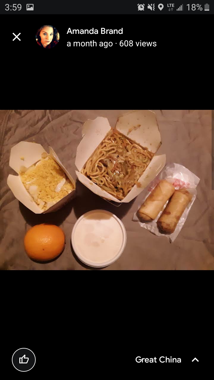 Read moreMy wife an I get take out from Great China enough that I felt like I needed to review it. If you’re looking for a new place to try in Morganton to eat, this is it. They advertise Mandarin, Szechuan, Hunan and Cantonese. The Egg Drop Soup, Singapore Mayfun, Chicken On A Stick, Wontons and Eggrolls are must-haves. Also, my wife really enjoys their vegetable lo mein. We’ve independently heard from a couple people that their fried chicken is really good. We’re going to start trying different things on their menu because our “normals” are consistently great. I don’t really know what to say about the atmosphere. In my opinion, it’s not really an eat-in place even though, you could. They have a few decorations up and eating-in isn’t discouraged by any means. Thanks so much Great China staff for your...