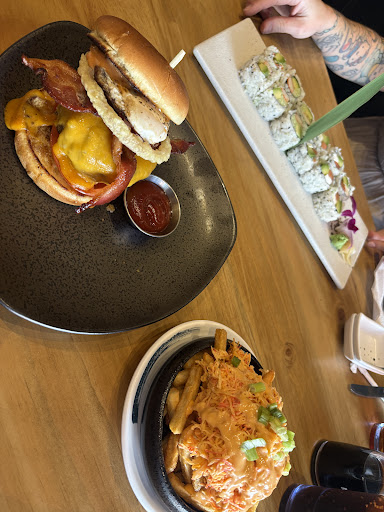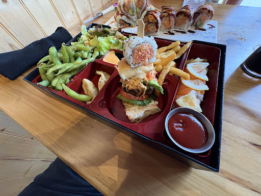 Ā Ā Ā Read moreWow! FANTASTIC Variety. I must admit that I didnāt have high hopes for this place. Burgers and sushi? We ordered the Classic Bento Box. What we were presented with was a feast of flavors and textures. Words cannot explain the tastiness of the small bites. It was like having the best things from a gourmet buffet all presented on one sectioned tray. The fried dumplings with the exquisite dipping sauces were savory and sweet at the same timeā¦fresh edamame tasteful with a sprinkle of umami seasoningā¦the just right burger-slider juicy and topped with the right amount of everying down to the pickleā¦.crispy fies with a perfectly textured crunchā¦I chose the salmon/avocado sushi roll and it was fresh and vibrant⦠and the ginger salad! Oh my! The 16.95 price point was spot on. Our waitress Cheyenne was delightfully informative and attentive. We will be back to try the Madness Bento Box next with the more gourmet styled options⦠but itās hard to imagine that it could be any tastier than what we ate for lunch. Being open for a late lunch was also an option we appreciated. I did find the atmosphere a bit dark and sterile. That did not affect the great time we had there with friends. Go and try it! You wonāt be...