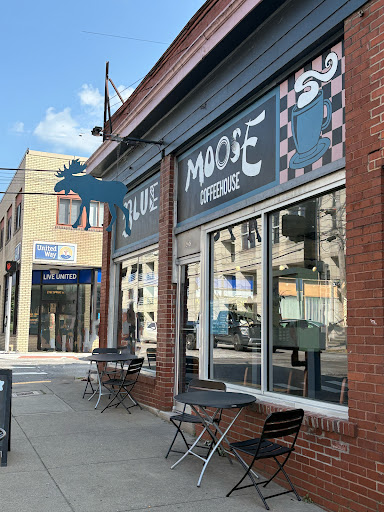 Read moreAtmosphere: ⭐⭐⭐⭐☆ (4/5) Located right in the heart of Morgantown, Blue Moose Coffeehouse has a clean, laid-back atmosphere perfect for relaxing with a cup of coffee. The space is open and bright with large front windows that let in natural light, a mix of table seating and bar stools, and plenty of plants adding a cozy touch. Soft, low music plays in the background, creating a calm environment without being too quiet. They offer free Wi-Fi, making it a great spot for studying, remote work, or catching up with friends. Outdoor seating is also available for nice-weather days. They serve breakfast in the mornings until 2 PM, which is a nice bonus for late risers.