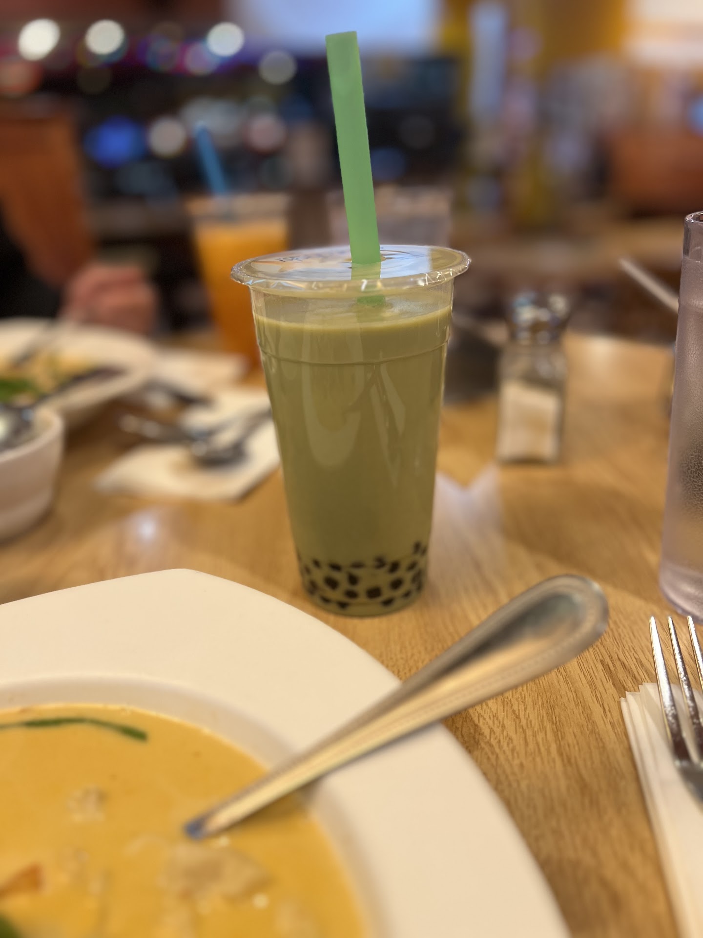 From the moment you look at this restaurant you’re assaulted at eye level by menus and signage clearly made in PowerPoint - not out of ineptitude, but because every employee seems to speak English as a 2nd or 3rd language. Airport-style arrows futilely direct you toward what Chaang Thai imagines is a normal restaurant interaction - reserving your table by flipping over a small metal “taken” indicator, heading to the touch screens in the far, far back (past where the employees exit) to input your order, then grabbing your own non-disposable drinks and silverware as you wait patiently for a concerningly thin teenager to deliver your food in total silence. The food network plays continuously on ceiling-mounted TVs, as if insisting with suspicious intensity that yes, this is in fact a restaurant, we swear.