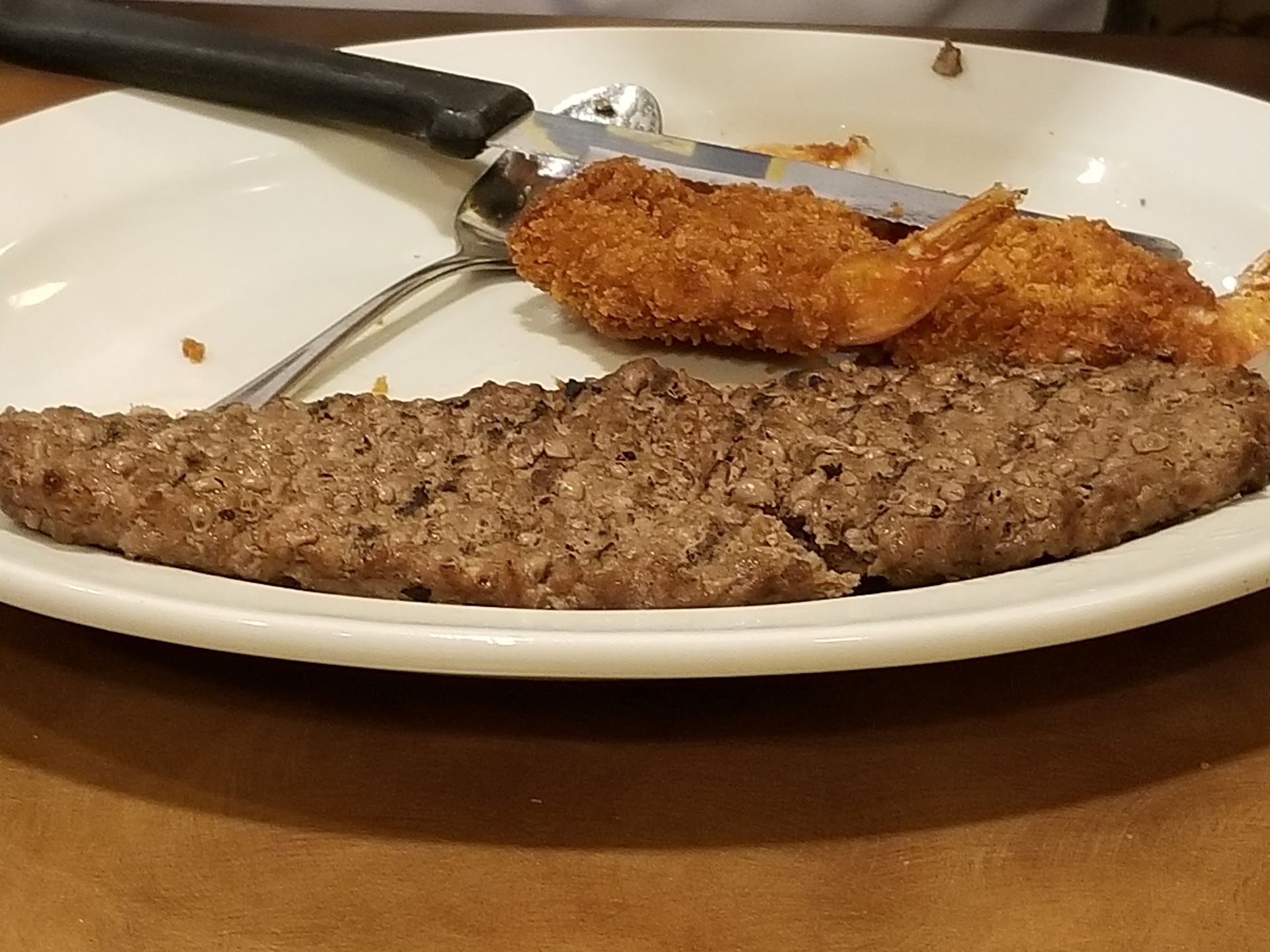 Read moreThe place was short staffed. The salad bar was alright. I would recommend staying away from the sirloin & shrimp meal. We were extremely disappointed when we ordered them & could not even eat them. The steaks are highly processed meatloaf that looks like something fr a school cafeteria. I wish when we ordered them medium rare the waitress would have explained that these are not real steaks. Needless to say I am glad they did not bring these out medium rare.