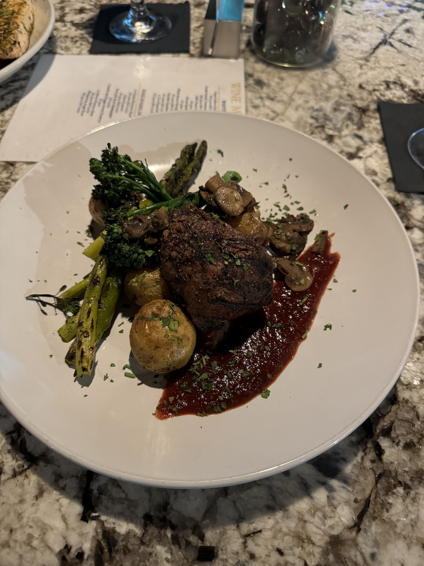 Read moreFirst impression of this place is very nice when you step inside. It has a nice atmosphere and I wondered why it was dead on a Friday night. My fiancé had the Salmon which she said tasted good, but the food was only luke warm. I ordered the beef filet medium rare. It came out more on the under side of rare for the most part but I had eaten a few bites of it. The waitress came around after a few minutes and could tell it wasn’t right so she offered to make it right. They took my partially eaten steak and cooked it some more. Then re-plated it. It was better the second time and I finished it, but I wouldn’t order it again. I saw these charred crispy looking pizzas go out a few times while I was there so I ordered a pepperoni to try. It was somehow both charred and completely soggy at the same time. Not a single part of that pizza was crispy. Probably the worst I’ve had in a long time. I had high hopes and wanted to like the place, but I honestly can’t recommend that anyone go there for food. The above food and two glasses of wine cost $100 to boot so it was...