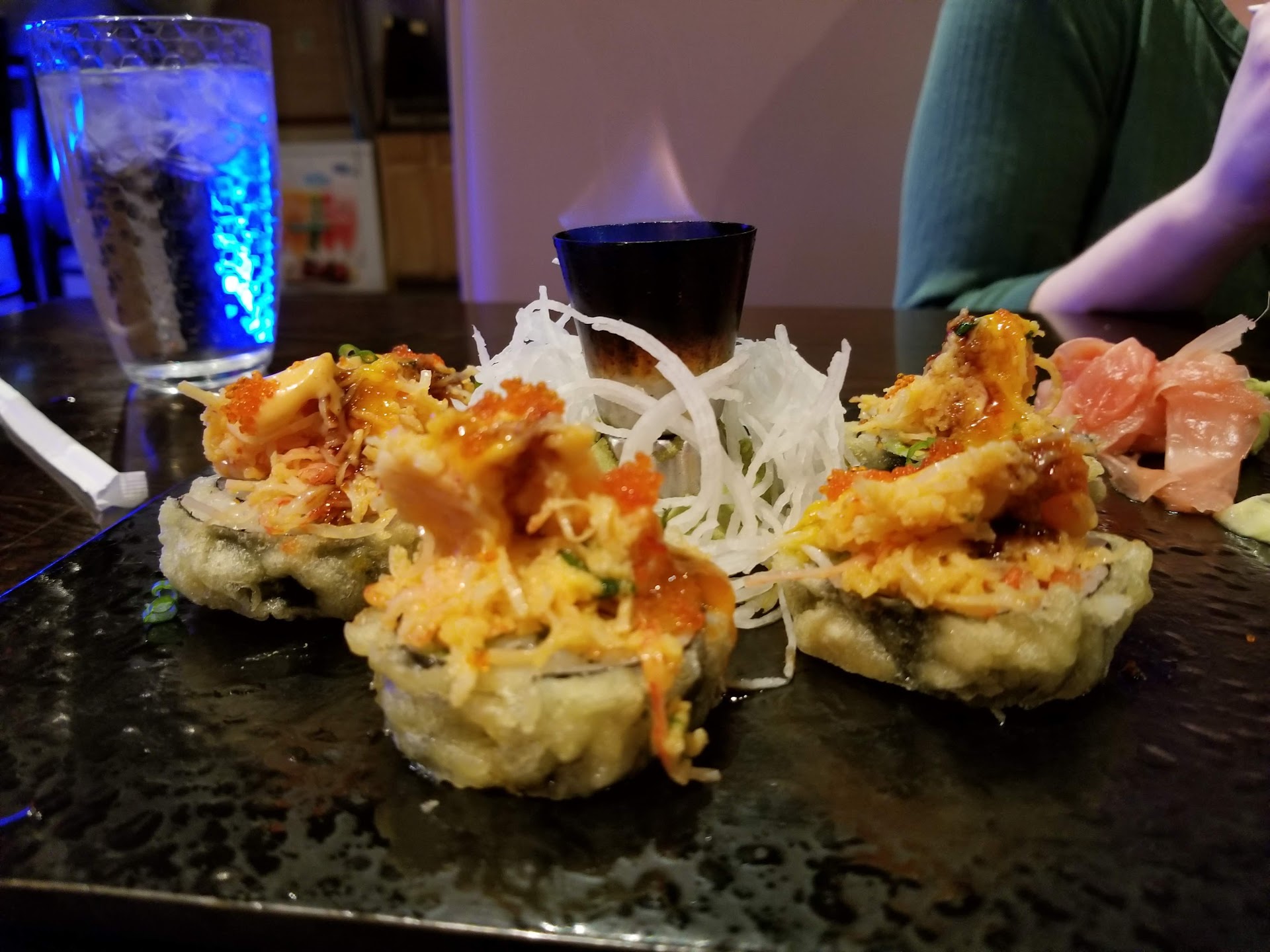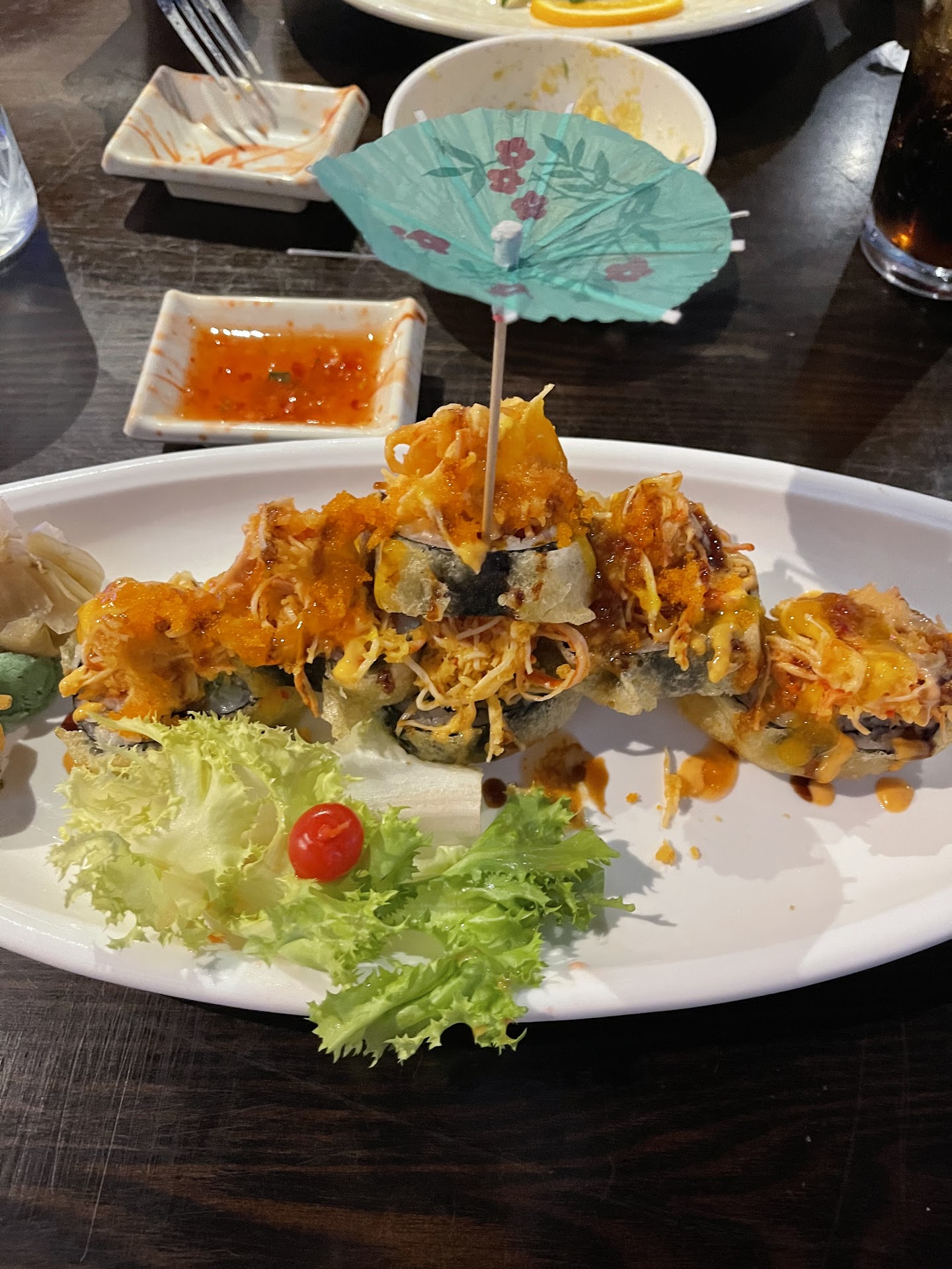 Read moreDecided to try this establishment out while staying in Morgantown for one of many visits to Ruby Memorial (Best hospital ever btw) I live in Winston Salem and there is an abundance of great sushi đŁ in my area. I wanted to take my mom for her favorite meal. She is a Moo goo gai pan lover ! I also was having a sushi đ± craving. After checking reviews I decided on GTAF . First the good đ The soup and ginger salad đ„ were as expected tasty warm soothing soup and fresh salad with lovely ginger dressing which had a good consistency, not to thin at all. Egg roll appetizers were hot, crispy fresh and tasty đ. I had the volcanos roll which was delicious however the presentation was a bit strange. My motherâs Moo Goo however was a disappointment. It was very bland and barely warm. I was very sad đ as I wanted her to have a fabulous meal for a spirit lift. Mom gets excited about good cuisine. Restaurant was clean and had a trendy feel. Prices however reflected a much more sophisticated eatery. Tables etc were a bit worn and I assume what was a child of the owner was crawling around all over the bar top etc when left unsupervised (he was not a toddler) All in all it was a typical college town spot so donât go in with high expectations and...