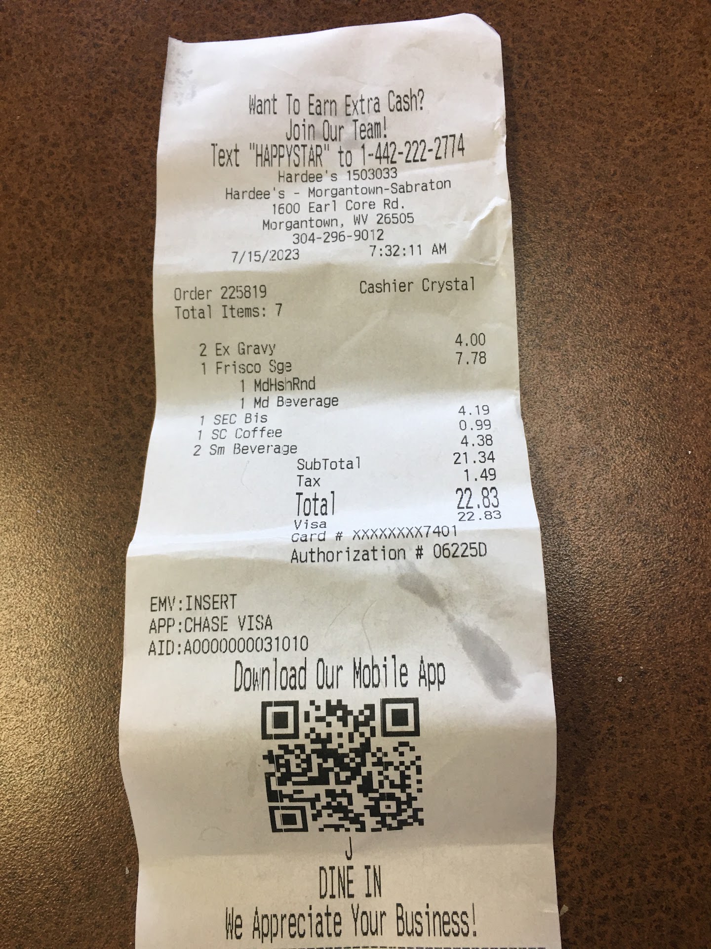 I'm saddened by the consistantly declining services at the only Hardee's located in Morgantown WV. My family and I use to enjoy the experience of a good hot meal served by a polite and conscientious staff here. Recently we went to our favorite fast food restaurant and ordered our meals at the drive thru. Notably we seen that they were not busy at all. Unfortunately after parking to eat we found that everyone of our 3 orders were wrong. Calmly I called from their parking lot as I drove back around the building to the drive thru just as I was speaking to the supposed supervisor whom had told me the problem would be fixed. Moments later we arrived at the window were I explained the situation to the employee whom seemed confused and disoriented then abruptly the window was shut in my face. 11 minutes later a gentleman with a tie and no name tag on appeared asking what the problem was. I explained for the 3rd time stating I believed I had just spoke to him I believed. At that time he rudely said give me your bags if food then, so I did. He closed the window, 8 minutes later he came back empty handed. Stood there a few minutes looking at the register then he opened the window and said if you ordered from here then where is your receipt? I said well you didn't ask for it earlier you just wanted the bags of wrong food back. I then handed him the receipt that amounted to $42.?? Aftet waiting 12 more minutes 2 bags of food was shoved at me and the window slammed shut. Unfortunately the order was wrong again but by this time the kids were starving so I decided to drive across the street to Wendy's. I've tried calling the store on several occasions but my calls go unanswered plus I no longer have my receipt because the man took it so I have no proof of my purchase. We...