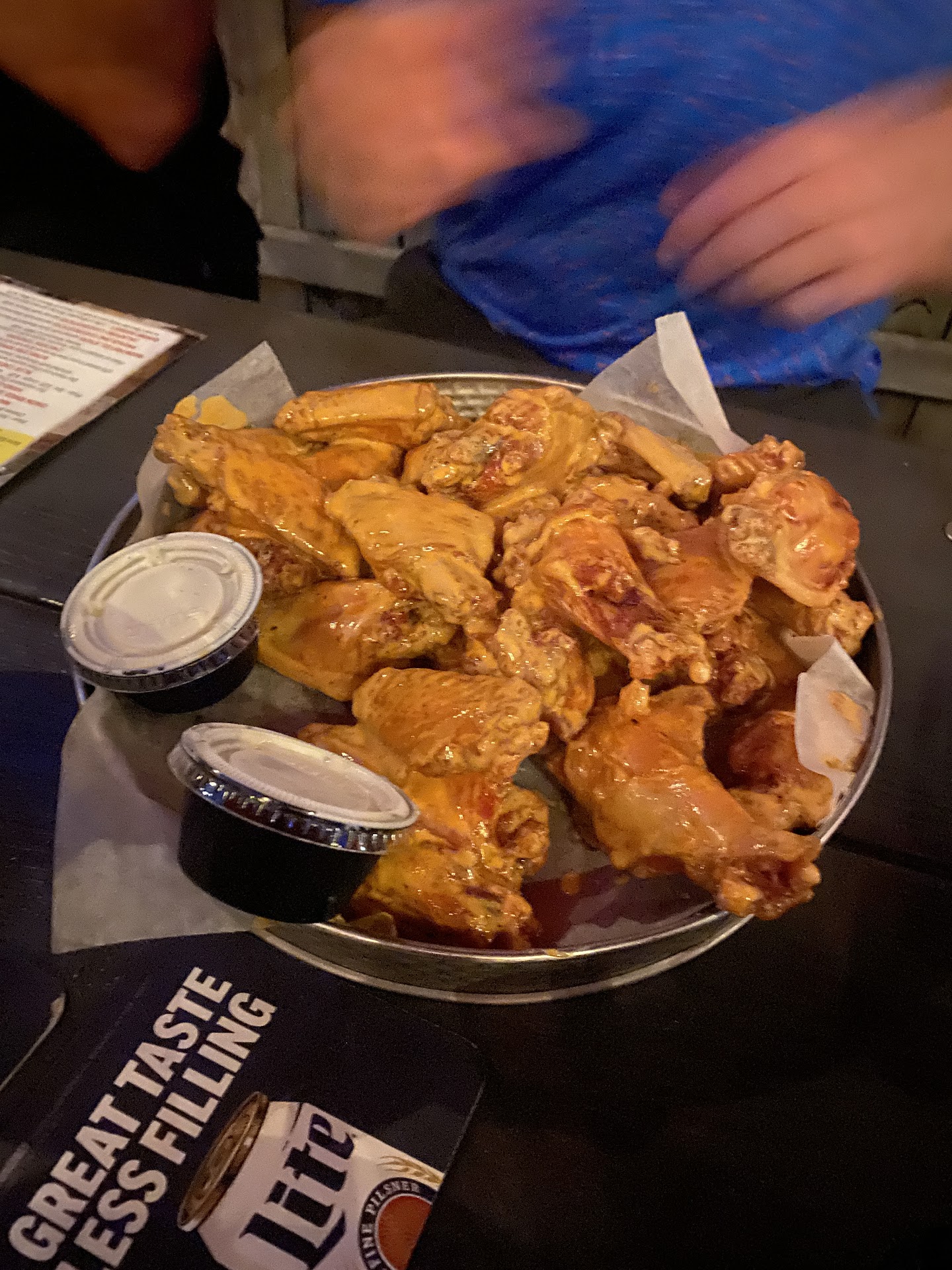 Read morehave always loved the wings, but about a month ago got 75 wings to go and they were so overcooked the meat was rock hard we could not even eat them, thought maybe they were just too busy and didn't pay attention to cooking time. Last week a friend went there for wings and told me he couldn't believe how the quality of the food had declined, and said he wouldn't go back. About 2 weeks ago we got 75 wing to go and they were good, today 05-14-2016 got 75 wings to go and a large order of fries to go, out of the 75 wings there was only 2 drumsticks (used to be 50/50mix) and the large fries was about the quantity of a small order from mcdonalds, very dis satisfied when cost with tipis around 60.00 hopefully they will make some...