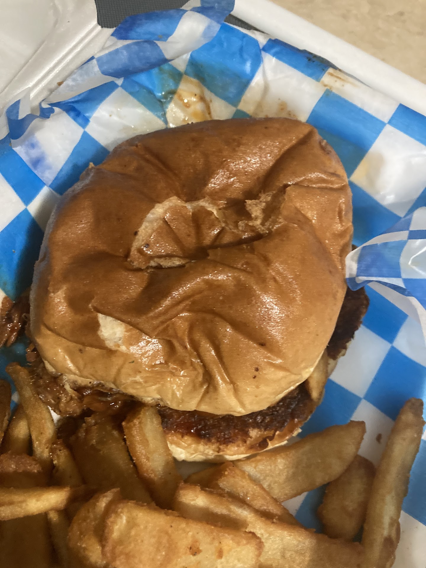 Read moreWe stopped here for a late lunch and couldn’t have had a more awesome experience. Although they were busy the bartender took care of us outside (because we had a dog with us) and despite our among care of the bar, prepping plates, and running back and forth we were taken care of like we were the only people there. The food was beyond delicious. I got the Jim Bean Sriracha Wings (perfect amount of heat and super tangy) and my friend got a burger with a fried onion ring and bacon (I can’t remember the name of it) and a couple local craft beers. We shared everything! My pup, Jaybyrd enjoyed a few fries and a big bowl of ice water the bartender brought out. I could only give 5 stars int this review but would have gladly given more. I will make this place a “must stop” anytime I...