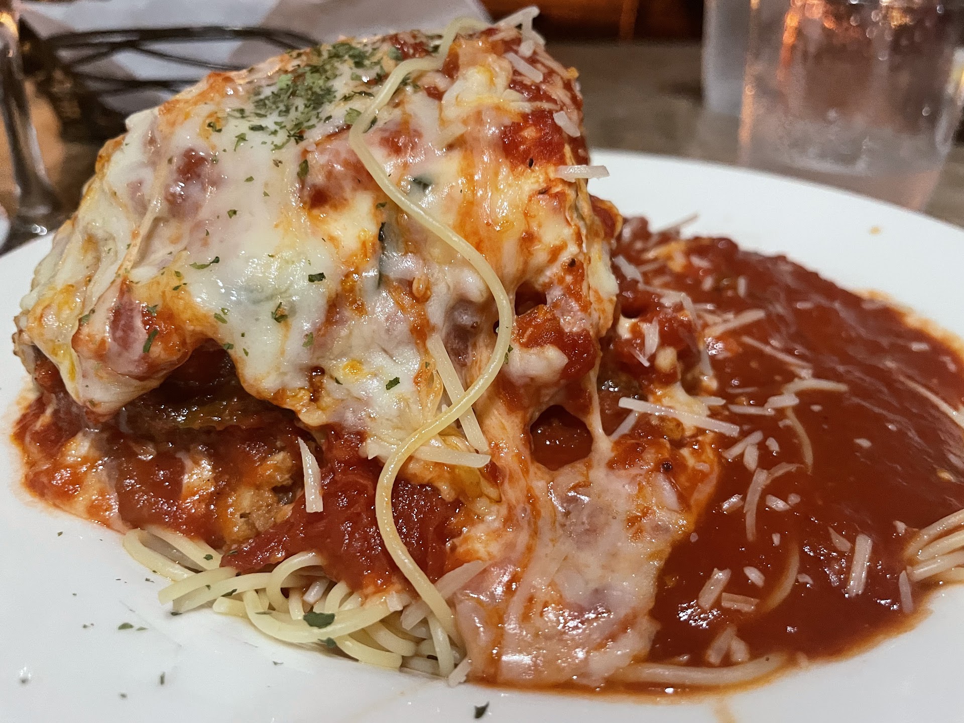 Food (3/5) The food was average at best. The breadsticks were the highlight — warm, buttery, and flavorful. Unfortunately, the rest of the meal fell flat. My spaghetti and meatballs featured bland meatballs and a sauce that was overly sweet and tangy, not to my taste. The chicken parmesan came with lukewarm chicken and pasta topped with the same underwhelming sauce. Both dishes were supposed to feature a meat sauce, but I found no visible meat in mine.