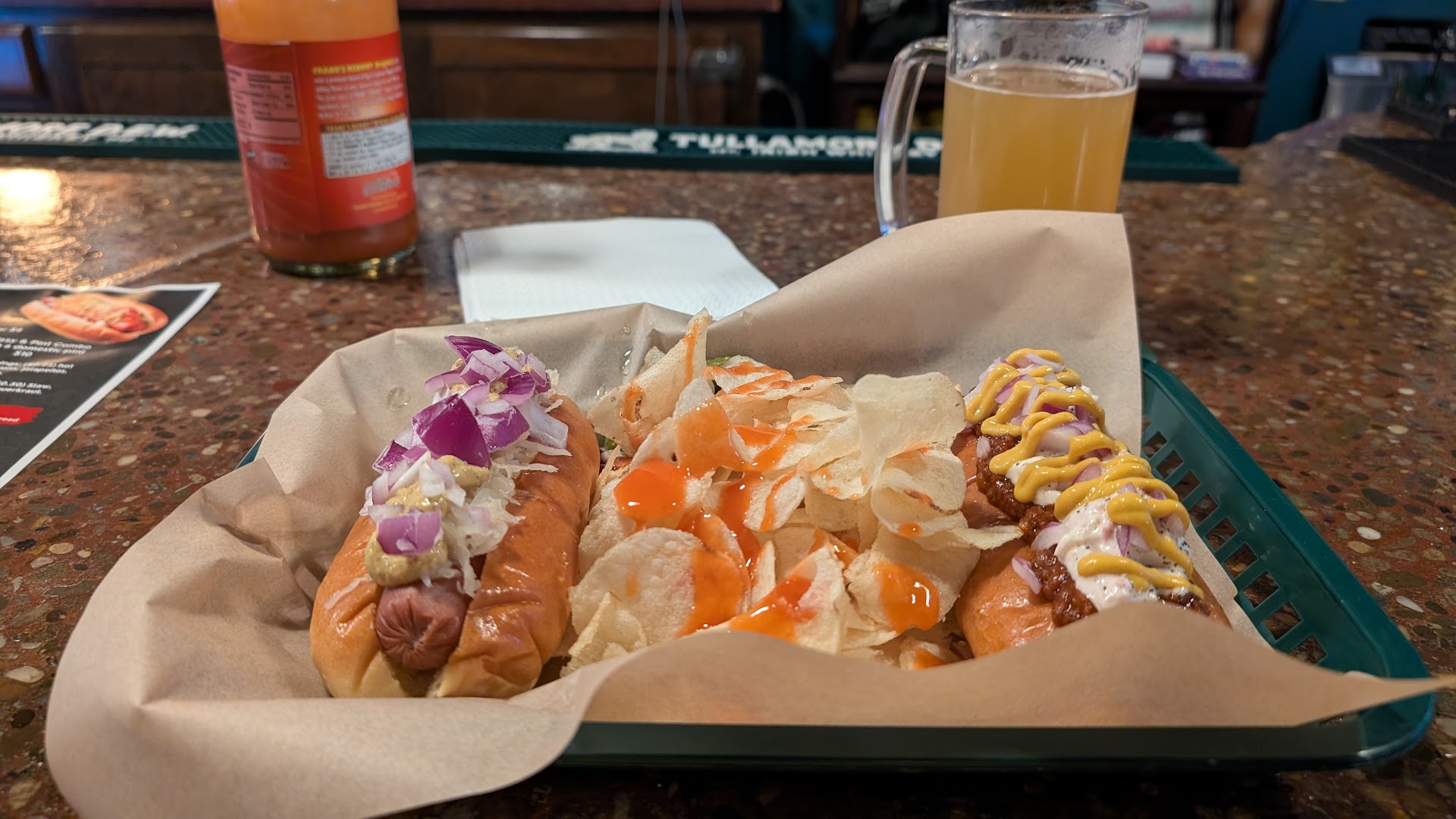 The Stone Hazy IPA was cold and refreshing (yes, I like hazy IPAs now) and we both got two glizzies and chips. The WV on the right made me say, "Now this is a gourmet hot dog" and the NYC was just as flavorful. Add in a little Frank's Red Hot for the chips and it made for a delicious lunch. And the Girls played fantastic!