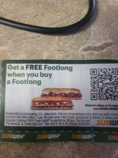 Read moreThey say that they don’t accept coupons, but their website, for the Morgantown location, says they are participating with coupons. The service was not good, the counter was dirty, they used old knifes, and they overcharged me for two Footlong sandwiches and a large drink, and I know this because I looked at the prices online (including the tax) and it was 5 dollars less than what they charged me. I used to work at a Subway, for two years, and we were friendly to customers, didn’t overcharge people, accepted coupons, and kept the place spotless! We cleaned the counters and used a new knife after every customer. I will not be going back to this subway, just wanted to make other customers aware. Go to Ohio County Subway, they accept coupons, they’re clean,...