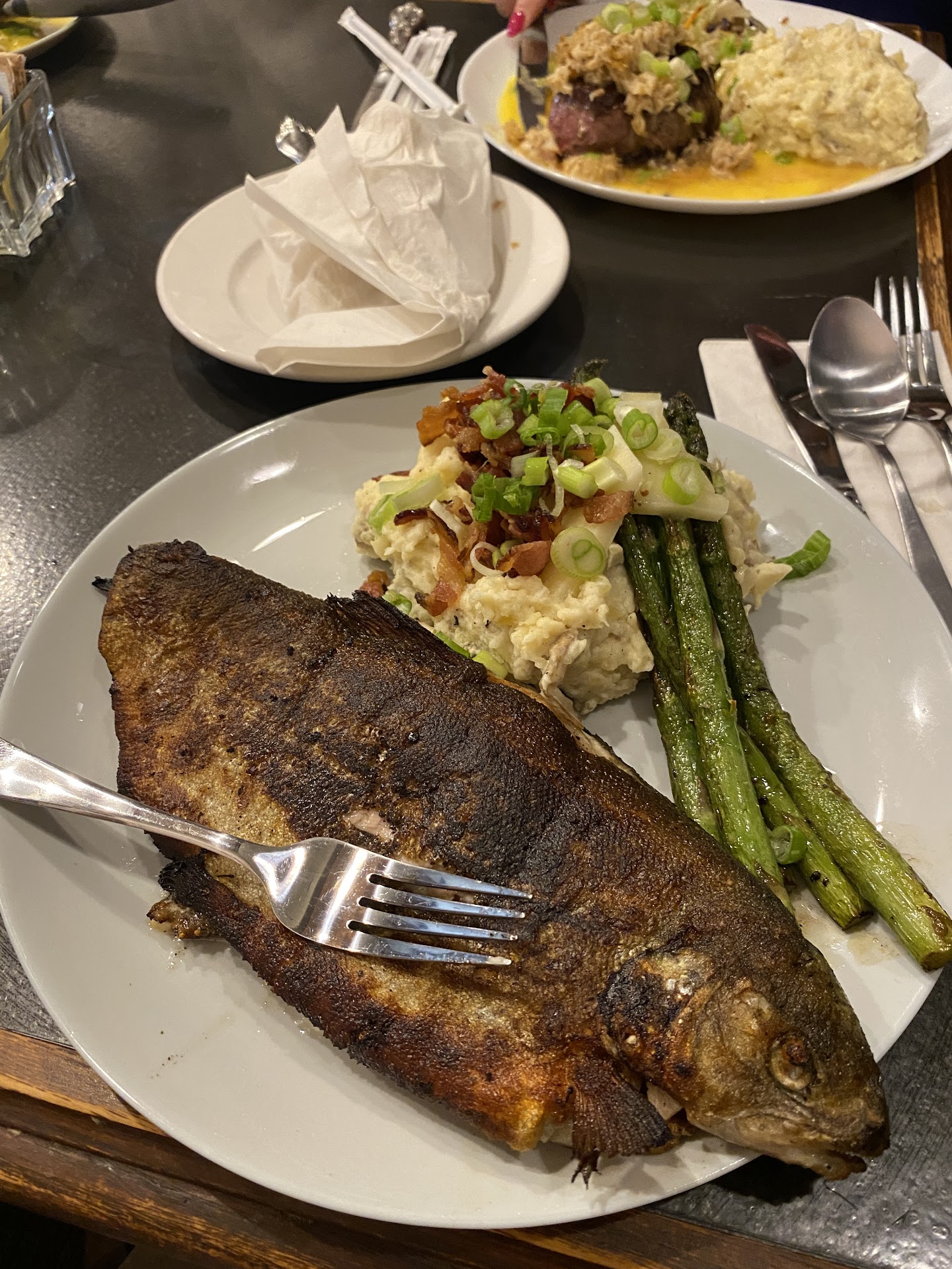 Read moreQuality new addition to the Morgantown dining scene. It’s located on the ground floor of the Seneca center. There are stairs on the side of the building leading down to the storefront. The steamed clams with focaccia were tender and delicious. The fried chicken was one of the best I’ve ever had. The French onion soup, sautéed veggies, smashed potatoes, and steak fries were good as well. Unfortunately, they were out of rainbow trout and branzino. Wasn’t a huge fan of the sweet cherry sauce for the snapper, but I’m partial to savory. Excited for when they rollout the pick your fish and cooking style “from the fish case,” assuming it’ll be fresh, live fish. Everything is also fresher than most places in Morgantown. The food is made from scratch and never frozen, which is extremely rare for inland restaurants IMO. Also the prices are fair, especially b/c the portions are sizable. Definitely...