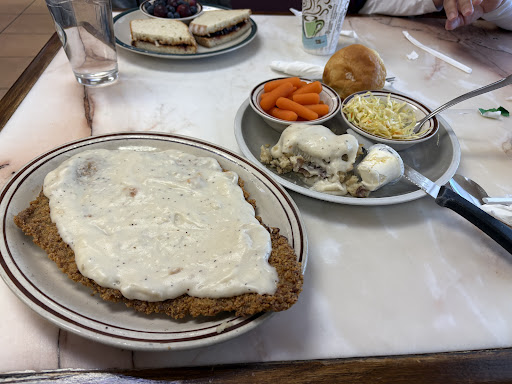 Read moreNOT COVID SAFE! And Online orderers beware. If you have any concerns at all about the ongoing pandemic, stay away, even for takeout (which we had ordered). About half the staff wears masks, some only use them as chinstraps, and others not at all. There is a big sign at the entrance declaring that they do not enforce the governor’s mask mandate. Given that the US President is currently hospitalized for this disease that has taken the lives of over 210,000 American citizens, this seems to me to be a seriously cavalier position about their customers’ health. I do not think that they recognize that wearing a mask is mostly to protect others, not themselves. It makes me wonder if this carelessness translates to other health standards of their business, such as kitchen or staff cleanliness. I had to enter the restaurant to pick up our food since it was an online order and I had already paid for it. They did not get the order correct. I ordered the chicken fried steak dinner and requested gravy on the side. The gravy was poured over everything making the steak a bit soggy by the time I ate it It was missing a side order of a vegetable and a side of hush puppies. The stuffed potato was missing a chili topping. The flavor of the food was just OK - maybe 2.5 stars, but it really should not be that hard to get an order right. Most importantly, for a business that serves the public, perhaps hundreds of different people a week, I cannot fathom why public safety is of seemingly little to no concern. I want to support local businesses and keep our economy alive, but I will not return and risk bringing a deadly disease home from this restaurant...