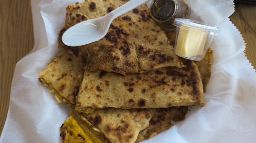 Read moreThis is the first time I ever had Indian food. And my first time here. A great first impression. They patiently explained what each item is even though there was a bit of a language barrier we made it work. They do have one person who can speak English very well. This is a vegetarian hub. Their menu changes daily with two curry choices and then a simple plain rice or Biryani. Bread choice of Paratha and Paneer. Limited supply of food so when they're out it's out. It seemed like there was plenty of food though during lunch time. Recommend takeout as there is limited space. They have chai tea as well as bottled beverages. I ordered a plate with both currys (Yellow curry and Aloo Badi)and Biryani and it comes with two freshly made paratha(a whole wheat tortilla essentially,very delicious!) It looked like a lot of food but it was so delicious it was all gone! ~$17 for the large plate and paratha. I will be...