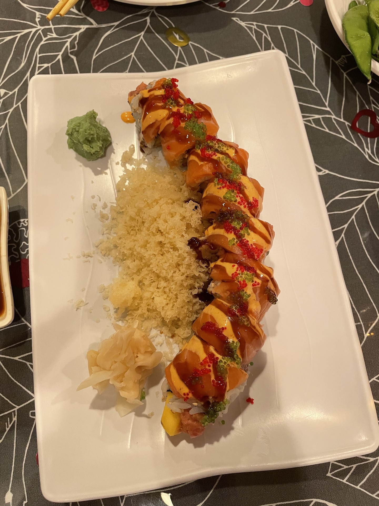 bruno roll beauty and beast roll tropicana roll sarah roll sushi pieces (salmon belly, yellowtail belly, sweet shrimp, scallop, squid, eel, mackerel, bluefin tuna)