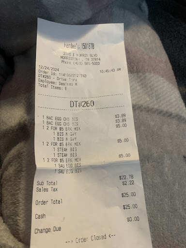 Read moreOK well we visited there a few months ago was not going to give a review but here goes we stopped for breakfast we went inside there was people waiting we ordered two bacon egg cheese hashbrowns and a drink wengot our drink I went to sit my husband was waiting so after 15 mins my husband looked at me and like what is going on another 10 mins I went up the people waiting was like why hasn't these people got their meal the cashier held up a bag and said 4 BEC.2 SAUSAGE 4 HASHBROWNS nobody answered I could see she was upset because nobody was helping her so I said we had been waiting awhile so she could give our money back and we will go then this guy came up yelling at me that they were short handed and we had to be patient so I said don't yell at me so he said I'm not yelling I said yes you are by that time I was mad I said I can see you have no help at the front but we had been waiting for awhile never asked what ordered was once I ask him if he understood my point never answered so I said it louder the girl turned around said something then picked the ticket out of the trash the guy had shift leader on his badge I said he needed to rethink his career got our money...