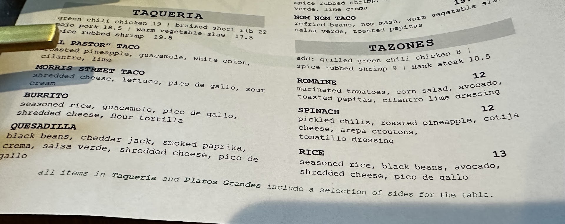 I will admit that the drinks were good, which is why I gave this review 2 stars instead of just 1, but we will not be returning here again. I’ve never spent so much for such a non-traditional Mexican dish, with an incredibly disingenuous policy on providing sides…for $27, you would expect that 4 shrimp would come with a side. Not here…you need to buy $54 worth of shrimp to get a $1 plate...