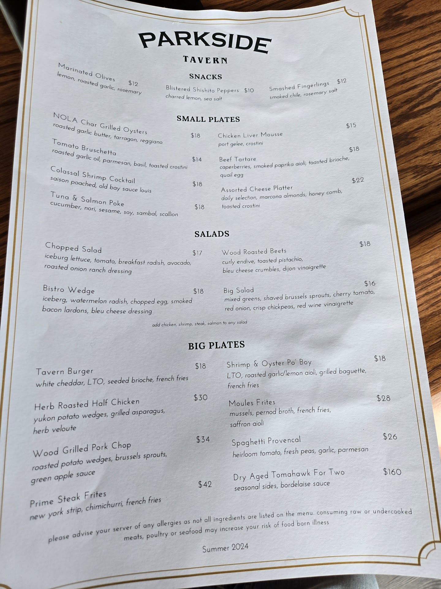 Read moreMy son and I met here for dinner and enjoyed incredible cocktails and a delicious dinner. Sometimes when you dine at a tavern, you give up a little in terms of choice and taste on the food selections...this was NOT the case at Parkside. We both ended up ordering the Salmon Meuniere...and it was cooked to perfection! My only complaint was that after getting cocktails and an Shishito pepper appetizer, we had to move because we were literally being swarmed by ants that seemed to be coming out of a windowsill plant. We first thought there were only a couple, so we killed them and moved on...but then we noticed at least a dozen more! Our waitress was lovely, and happily moved us to a booth, and the hostess came over to check on us and apologize...but I was expecting something in the way of a free drink, or having our appetizer comped, or something...because although we acted casual, and appreciated being moved, it was disgusting to be swarmed by ants...and I spent most of the meal feeling as if something was crawling on me (even though I knew my itchiness was psychosomatic LOL). Anyway...the ants put a slight damper on what was otherwise an...