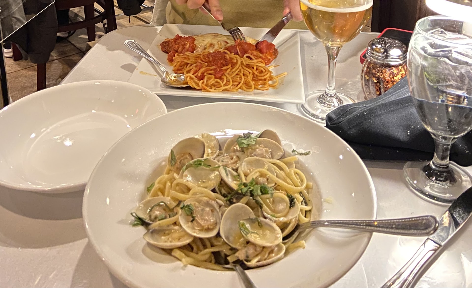 Read moreWe went to Pavesi for a second time because we enjoyed the first time experience here after. What we experienced the first time was not consistent with our second time visit. Firstly, the portions were much smaller than we remembered it. Salad was small and we didn't feel the dish equated to the price we paid for it. Secondly, the quality was poor this time around. The potatoes tasted like it came from a box. My vongole dish was full of empty clam shells. I dug into the dish and only found 50% of what I expected floating in the watered-down sauce. Thirdly, the service was lacking. The server kept forgetting our requests (no onion, black cracked pepper, no fresh parmesan, didn't refill water, forgot pen with receipt etc) and to top it off, servers kept dropping plates and cutlery making loud clanks by the kitchen door where we sat (butterfingers!). It ruined an otherwise, nice ambiance with live music. Finally, when we decided to complain about the quality of food, the owner comes and sits over at our table. With a condescending tone, he asks if I've ever made clam dishes. "I can give you a dozen clams right now to replace that. If you have ever boiled clams you know that they fall out of the shells". I'm convinced that i was given a lot of empty shells. Only found 50% of the clams that should have been on my plate and I counted them. When we complained about the mashed potatoes, the chef came out and invited us to go into the kitchen to see that they use "real potatoes". Then he proceeded to offer a hand-made cheesecake, apologized and stated that "customers are always right". He tried to smooth things over and change our experience but with the owner's tone we were turned off. We like to support local businesses and we want to remain supportive of this restaurant but we were both pretty turned off my the experience. If it was just a server or a chef, we could have been more tolerant but from the owner to treat a customer this way, was...