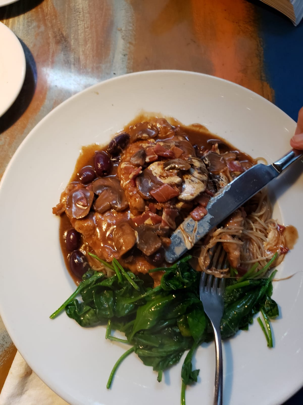 Read moreWe got there and it was fairly empty. Our server was off her game today. Brought us water and left for 20 minutes, came back with bread and said she was not ready for our order. Left again for 10 minutes. Took our order left came back 20 minutes later with appetizers. Chicken breast salad (hard dried out battered chicken slices on lettuce and sweet peppers drowning in ranch. Seared shrimp as well. Came back 10 minutes later to take out dinner order. Then never saw her again for almost an hour. Now the place is packed. The table beside us, was being served by a different server, that seated 30 minutes after us got their appetizers and their main course spaced out right. We still had not seen our server 57 minutes after we placed out order now been in the restaurant a total of 2 hours. She comes back to fill our water glasses. Asked about our dinner when she said I was just going to check on it as she was working a huge party and that is why the delay. I reminded her that we arrived long before the party. She shrugged and found our food. Chicken parm and spaghetti is what I ordered and it was the same dried out chicken as they put into the salad. My co worker ordered the same and got the same crappy quality food. Another coworker ordered a balsamic veal. He said it tastes very poor for 40.00 plate. One coworker ordered the seafood bowl. He said it was good. 1 out of 4 got what they ordered. I made a comment and the staff labeled me as a complainer. We left and we still gave her a tip. First impressions go a long way. It was not an enjoyableble visit. I wony e dire it...