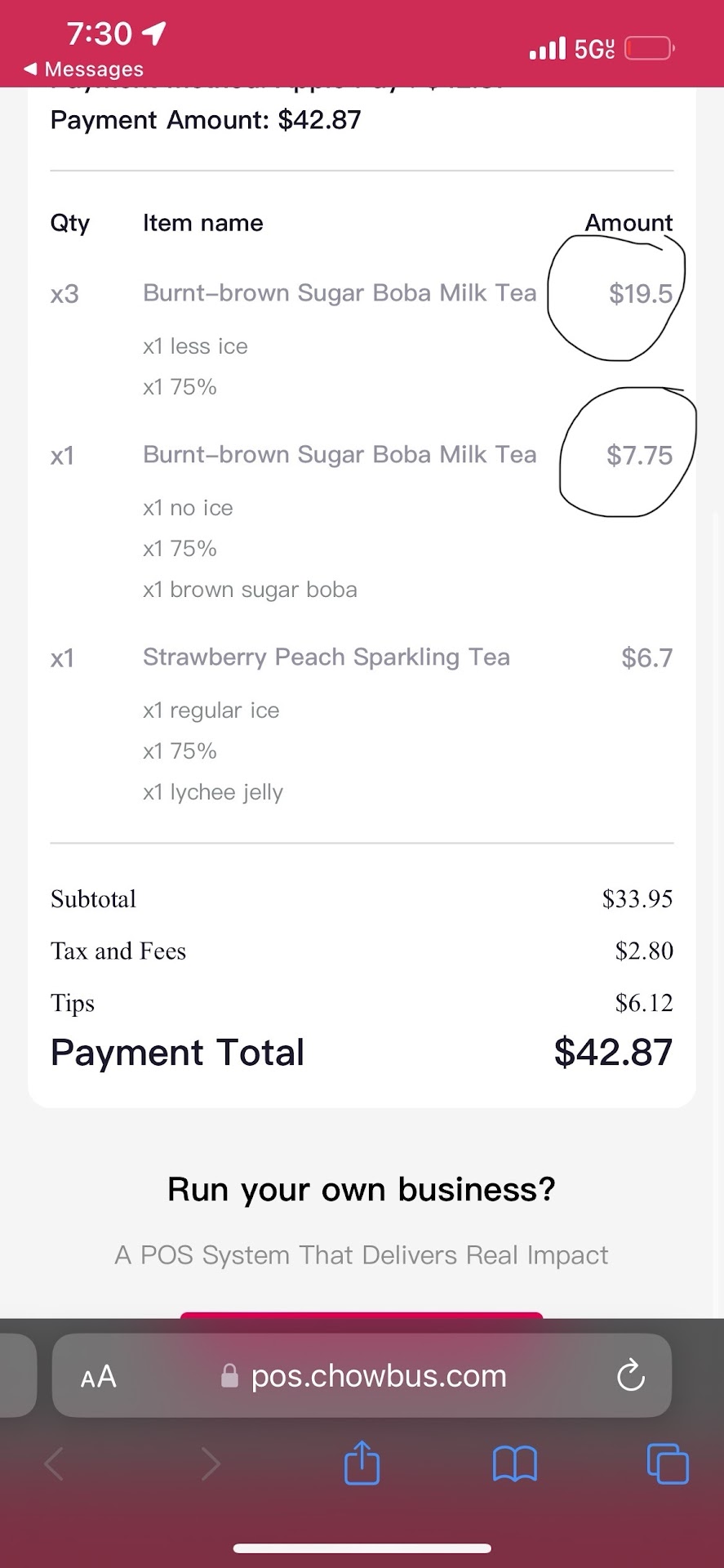 Read moreWe are so surprised with the price here. We pay $6.50 and $7.75 for small size drinks. That’s ridiculous. These drinks don’t even have options for you to pick the size, they said only came with one size and the size is small with that price. The other drink let you pick larger size even cheaper than this one that’s so weird(see pic for size comparison) . We never went to any place that ordered drink one size only but come out just small size for that. I think you guys should check back your menu and adjust the right size for an item cause the price for that not even cheap. The drink i ordered only difference with the brown sugar boba milk tea is the burnt top. And small size of brown sugar boba milk tea is $5.50 so that meant they charged $1 more for just put sugar on top and burnt it(mine they called burnt brown sugar milk tea ^_^) And on top of that we order extra boba but they come out the same like normal one. The girl make our drink left one drink behind and do other drinks after us, we have to asked couple times for it until they realized they forgot to continue on our drink. We have to wait almost 30’ for all of...