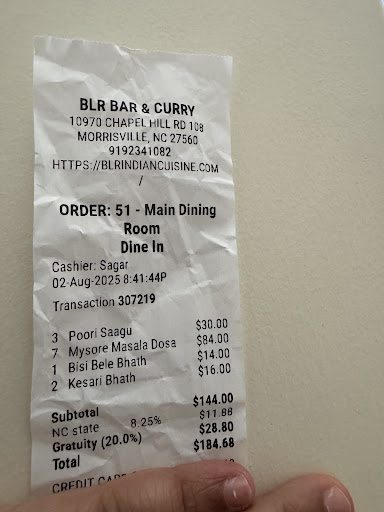 We've been craving authentic South Indian cuisine since moving to the RTP area, and thanks to a cousin's recommendation, we discovered BLR. We visited on a bustling Friday evening, but were seated promptly within 5 minutes. The aroma of delicious food wafting through the air promised a fantastic dining experience.