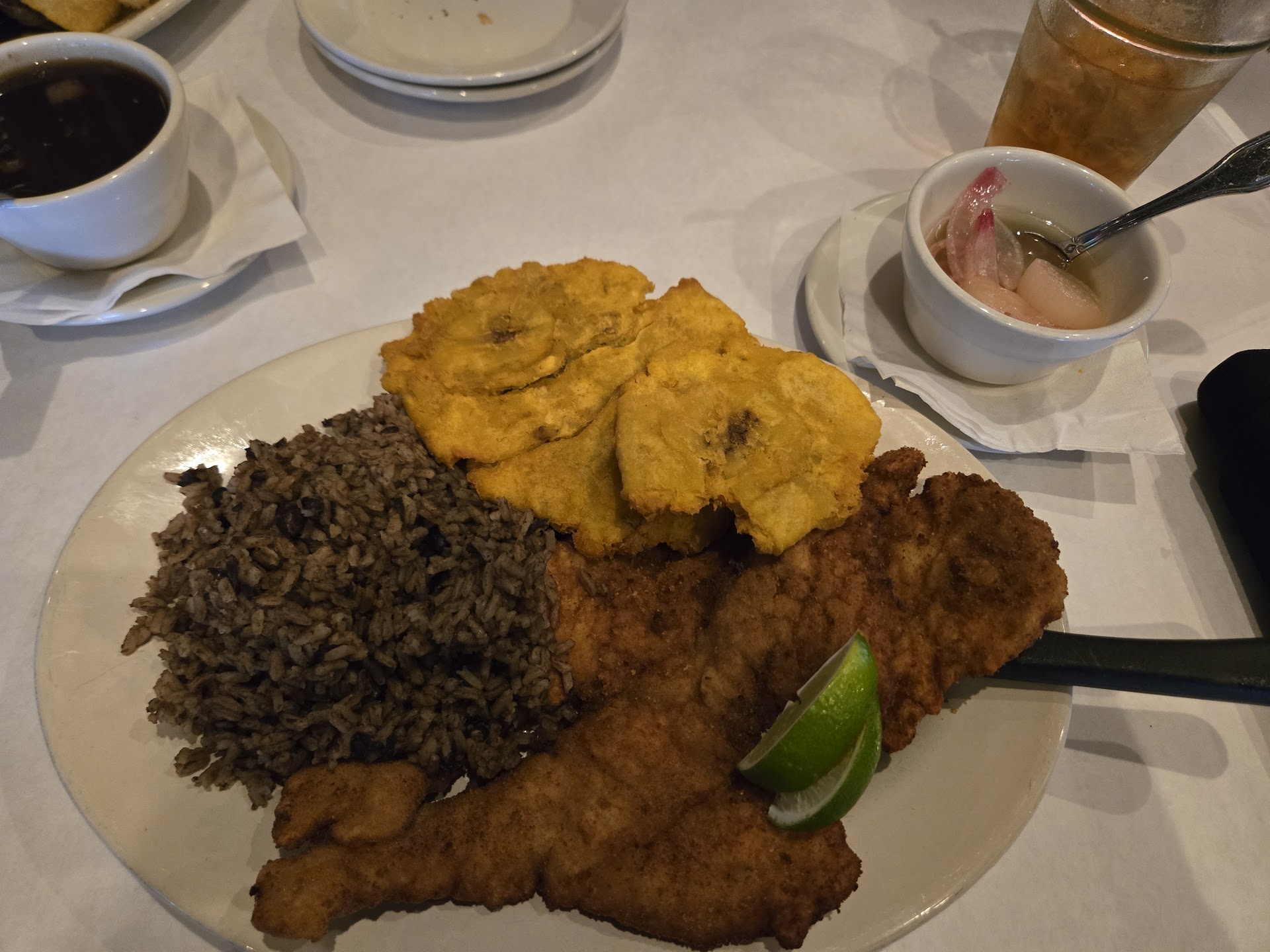 Went on a Wednesday night around 6:30. Sign asked for patience as they are experiencing staff shortage. A common occurrence in these times. Wasn’t terribly busy, but more seats in main dining room were taken than not. First impressions. Was asked to have a seat while they cleaned the table. Table was not terribly dirty. It was cleaned quickly and we were seated. Tables are arranged in a manner that you are not sitting on top of the table next to you, which is very nice. You can have a conversation without being overheard. Music was playing and it was not too loud. We were waited on in quickly enough but not too fast that we didn’t have time to look at the menu. Stop in the bathroom found it be CLEAN! While a little outdated, the toilets were clean as well as the floor and it did not have a bathroom odor. Food came out in a timely manner and the food was really good. My husband is Cuban so we’ve been to more than a few Cuban restaurants. I had the skirt steak with chimichurri sauce with white rice and a side of black beans and maduros. My husband the typical pork with black beans and rice with fried yuca and maduros. A solid meal for a great price. You get 3 sides which is unheard of! Meal came to $68 which included a Malta and pepsi. We also got an appetizer of beef empanadas which did not come out until after the meal. That was the only issue but it was no big deal. We brought them home for lunch the next day. Good meal, good service at a good price. Would recommend and we will...
