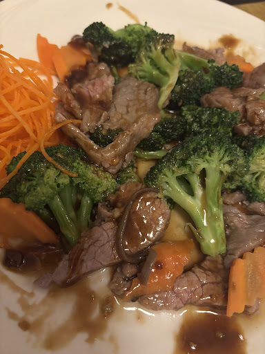 The place inside is very pretty but they need to pay attention to the little details. For example, a lot of the light fixtures need bulb replacements and our light fixture over our table was missing the bottom making it unattractive and not uniform with the other light fixtures. Other than that it looked clean and attractive with the low lighting. If you are an escargot fan, do NOT order the escargot appetizer. You will be disappointed in the puff pastry for sure. It is not fresh and they douse the appetizer in a "spicy black bean sauce" which wasn't spicy at all. There was too much of the sauce it was very heavy. The weird (and gross) additive to this appetizer: OKRA! Who wants to bite into a slimy, luger-like substance in their appetizer? Okra was not listed as one of the ingredients in the description so I didn't not expect that unpleasant feeling in my mouth! My fiancé had the crab rangoons. These were definitely much better than my choice and very good. The sauce the rangoons are served on is a very light coconut sauce. I ordered the Wok Seared Duck. When my plate arrived, there was a big chip in it, about the size of a penny. The sauce virtually has no flavor. While the steamed broccoli and carrot shreds taste nice and have a vibrant color, the lettuce that the duck is served on is very unattractive. It looked like a hunk of over cooked cabbage. The duck itself was several pieces of leg meat and I pulled out about 5 pieces of gristle out of my mouth from each piece. I would not recommend this dish at all. My fiancé had the House Special Duck. It was a like a duck breast "patty" encased in breading and deep fried. The breading was soggy between it and the duck. The spicy dipping sauce was very good, not too spicy, and the typical Asian mixed veggies were good. I would not recommend this dish either. Both dishes came with white rice which did nothing for the meal since there wasn't a lot of sauce to mix in the bland rice with. This place is out of the way for us but I'd like to go back and try something else. Perhaps the sushi. The service was just OK, she only checked on us once and I think it was mainly because I looked at her while she and 3 other staff members were staring at us...