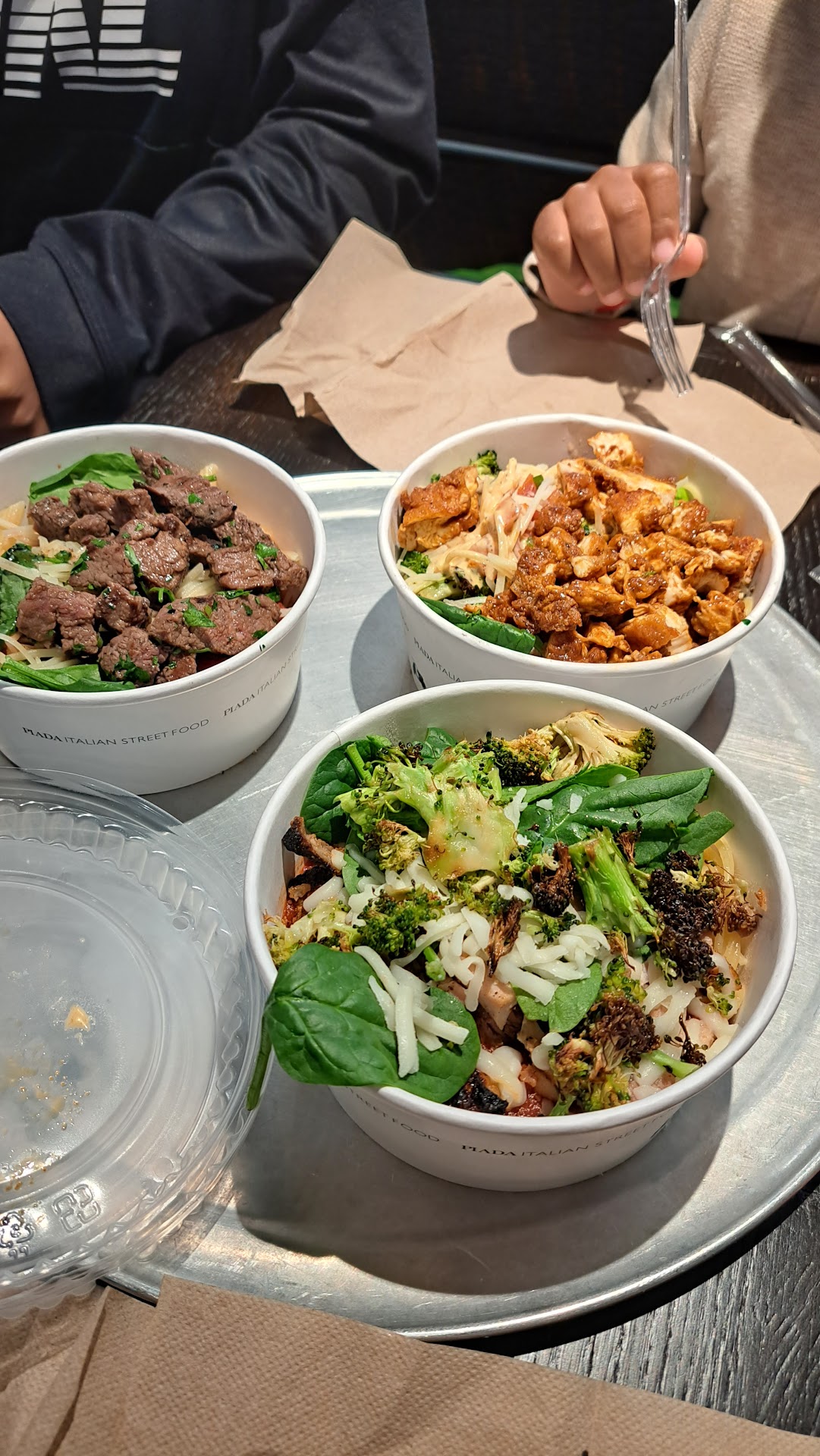 Read moreSo I saw that Piadas was finally open and I wanted to try it. Walking in it instantly had a Subway and Chipotle vibe going. The menu looks great with plenty of options. After that, everything went downhill. I ordered a salad and a side of meatballs. (My substitute for soup and salad) There are two sizes of salads. Small and Reg. It's served in a different bowl but seems like the same proportioned amounts. Stick with the small salad. The meatballs were brought from the back and sauced in front of me. The pasta, that I did not order was sitting on the counter and looked dried up. Now for the taste...average or below. Meatballs are frozen which is fine I get it but we're not very good. I have had frozen meatballs I swear we're homade. These were beyond obviously not. Red sauce was ok but no flavor. Just cooked tomato. The salad was underwhelming at best. I would say that Chipotle and Subway are both better than here. My opinion of course. Two cooks brought food from a different restaurant in and we're eating it off to one side. That should tell you everything you need to know. Now here is the thing. This is not to put Piada's down. But I would say it totally depends on the expectations you have. If you like a blander style of food without a lot of flavor then this is your kind of place. If you are a foodie and want flavor, go somewhere else. I despise Olive Garden but hindsight I wish I would have gone there for lunch instead. Olive Garden would have been cheaper. There is a market for the people they are marketing toward. But I would NOT call this street food. Street food is typically homemade and will typically wow your pallette. Best of luck Piada's. I...