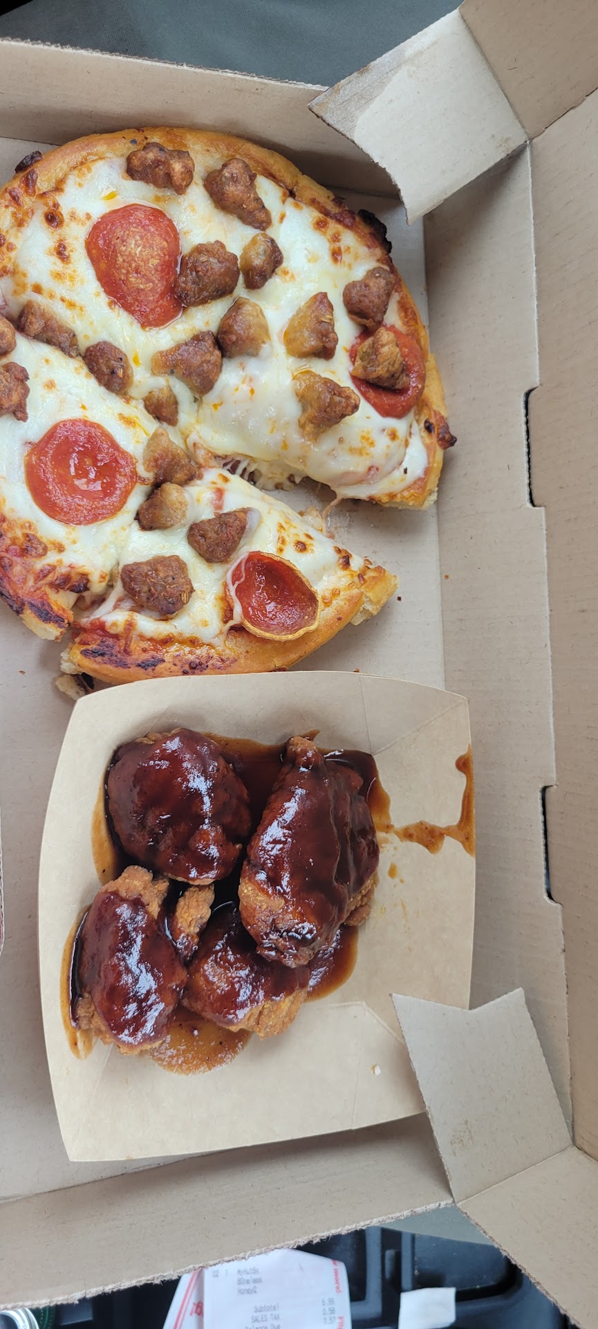 Read moreThis rating does not deserve even 1 star. First off, the delivery driver called before headed with my order because he mentioned there were a number of prank calls, which was fine. Then I waiting 45 min later for my order still no order was delivered. I called the store and associate mentioned that my order was canceled. The driver instead of calling myself to see exactly where my apartment was being he was lost brought order back to store. This was over 2 hours now. I called the store and the associate said they would make the order fresh and have a door dash bring back out. I asked the store if there was anything that could be done with the price, she mentioned a 10% discount. Which only deducted about 1.50 from the original price. This made me feel more frustrated as I thought the store could have done better than this. So if was after 10:10p now from when I originally ordered my order at 7:42p. Door dash came, did not have any issues finding my apartment like the other driver did from the store. Opened the dinner box up and the pizza looked like it had been rolled around the box, unattached, food was not hot and was cold not even warm. I will not order again delivery from Pizza Hut unless I did carry out. This is not the first time having issues...