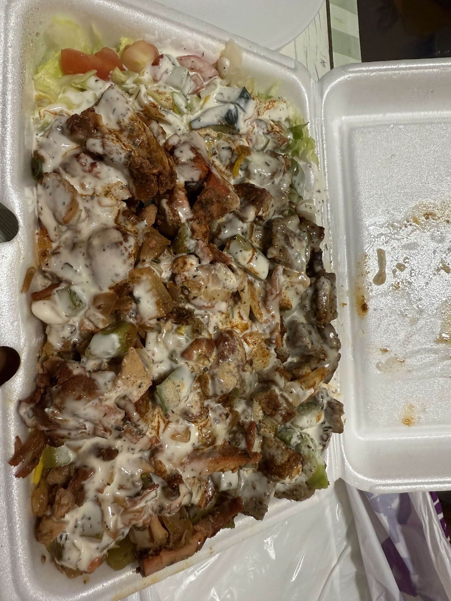 It was served in a small styrofoam takeout box, about the same size as the one we tried in NYC. When I went to order, the server named Mohamed asked to wait for them to cook fresh meat. I parked right across the Mobil gas station close to it, and I waited in the winter cold while I noticed other customers pick up food. They probably ordered by phone in advance.