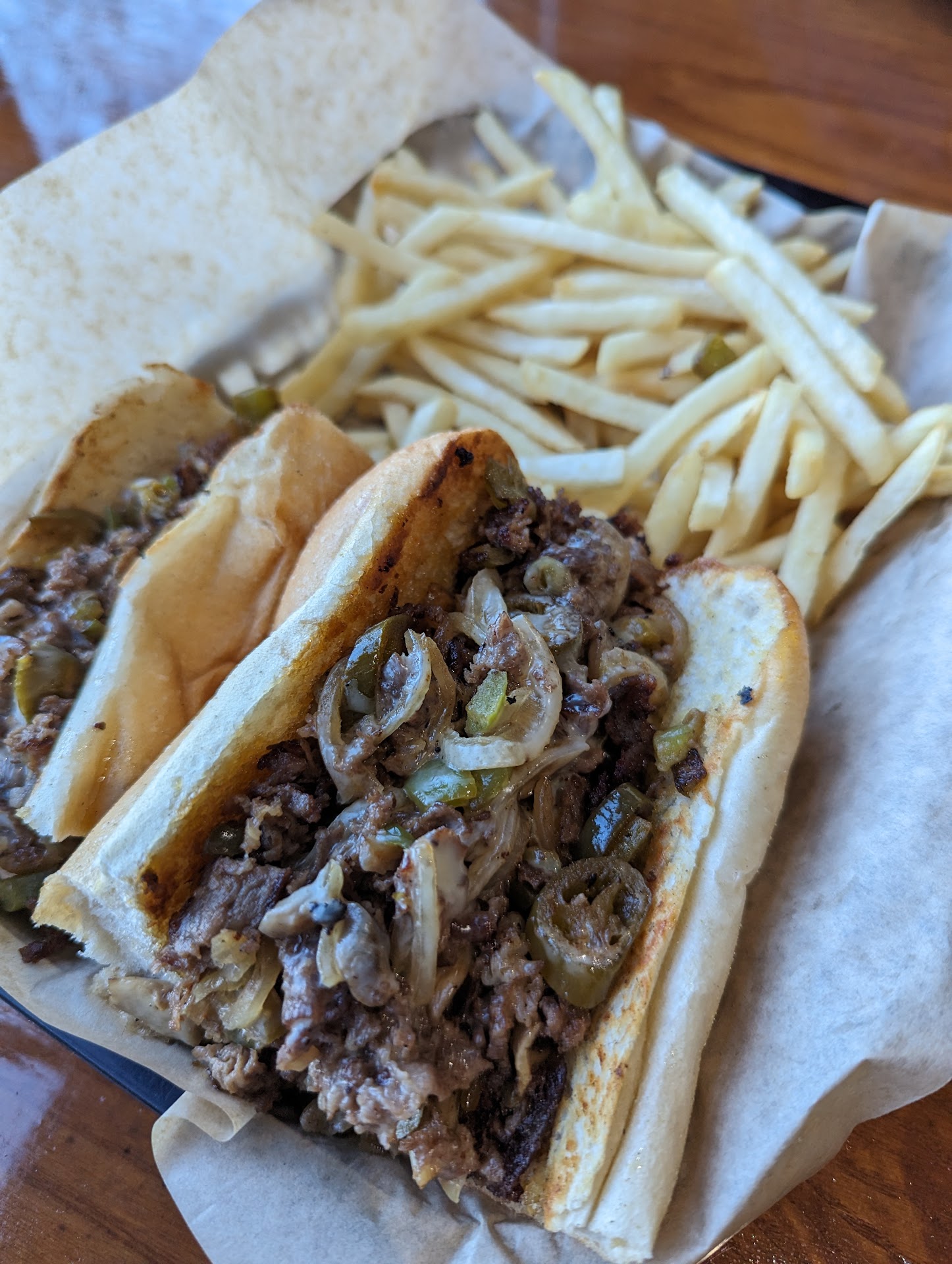 Read moreVery bad experience tonight. Was there with a friend and his kids. Including us there were people at maybe 6 tables but they had only 1 person waiting the tables so it took awhile to get our order in (didn't see the manager helping with that). All the kids ordered Mac-n-cheese and fries and we ordered the impossible Philly sandwiches; mine with no jalapeno. It looked like there were 3 working in the kitchen so I thought the food would come out fairly quickly, but no. It was over 20 min for the first items, the sandwiches, to come out. Another almost 10 min for the first two bowls of Mac-n-cheese to be brought out and another almost 10 min for the other two. Another 5 min for 3 of the fries to come out and another 5 min for the fourth. When I looked at my sandwich I saw they had put jalapenos on it. I can't tolerate very spicy food so I sent it back. Instead of making a new one the cook just removed the peppers. The waiter actually knew that's what was done and told me saying the kitchen staff was grumpy and argumentive about it and he couldn't get them to do anything else. It was getting so late, and I was really hungry, so I tried to eat it but with the juice from the peppers being in the sandwich I could only eat about a third of it before my mouth and throat was on fire (even tried putting ranch dressing on it to mellow the capsaicin). I ended up regretting eating it because about half hour after leaving I had major heart burn. The waiter tried to make amends for my sandwich and the slowness in the kids food by discounting all our food. I've been here as few other times and never had this kind of experience. This may have been a one off night for them, and I will probably come back again to give them another chance, but if I have a repeat experience I...