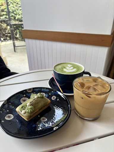 To complement our drinks, we treated ourselves to a slice of matcha pound cake. Its texture was incredibly fluffy and tender, while the matcha flavor was robust and delightful, with a gentle hint of sweetness that made each bite a pleasure.