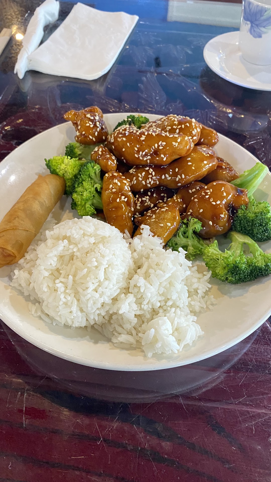 Sesame chicken - not good, lacked flavor. The sauce made the breading on the chicken saugy. I'm not sure when sesame chicken came with veggies. For the price of $12.95 It's not worth it. I will not order again.