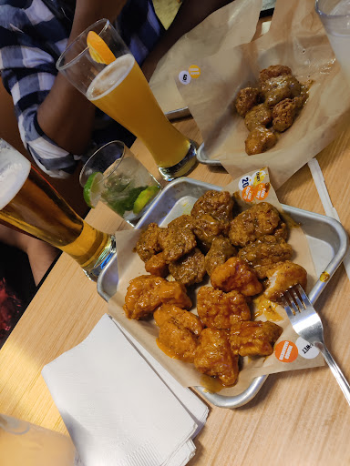 The fried pickles were too sour. The nachos were soggy and the chili on the nachos was so spicy I couldn't eat it (I was told they were mild). The onion rings were amazing though! The mozzarella sticks were pretty good but cooled too fast and tasted bad cool. The wings were about 1:4 chicken:bread ratio with overdone crunchy breading and dry stringy chicken that tasted akin to shoe leather. The sauces were either so thick that you couldn't taste anything else or find chicken in the sauce, so sweet they made you nauseous or so thin you could barely find them depending on the order. A couple tasted okay but none were what I would call exceptional. Pizza Hut makes MUCH better wings for half the price.