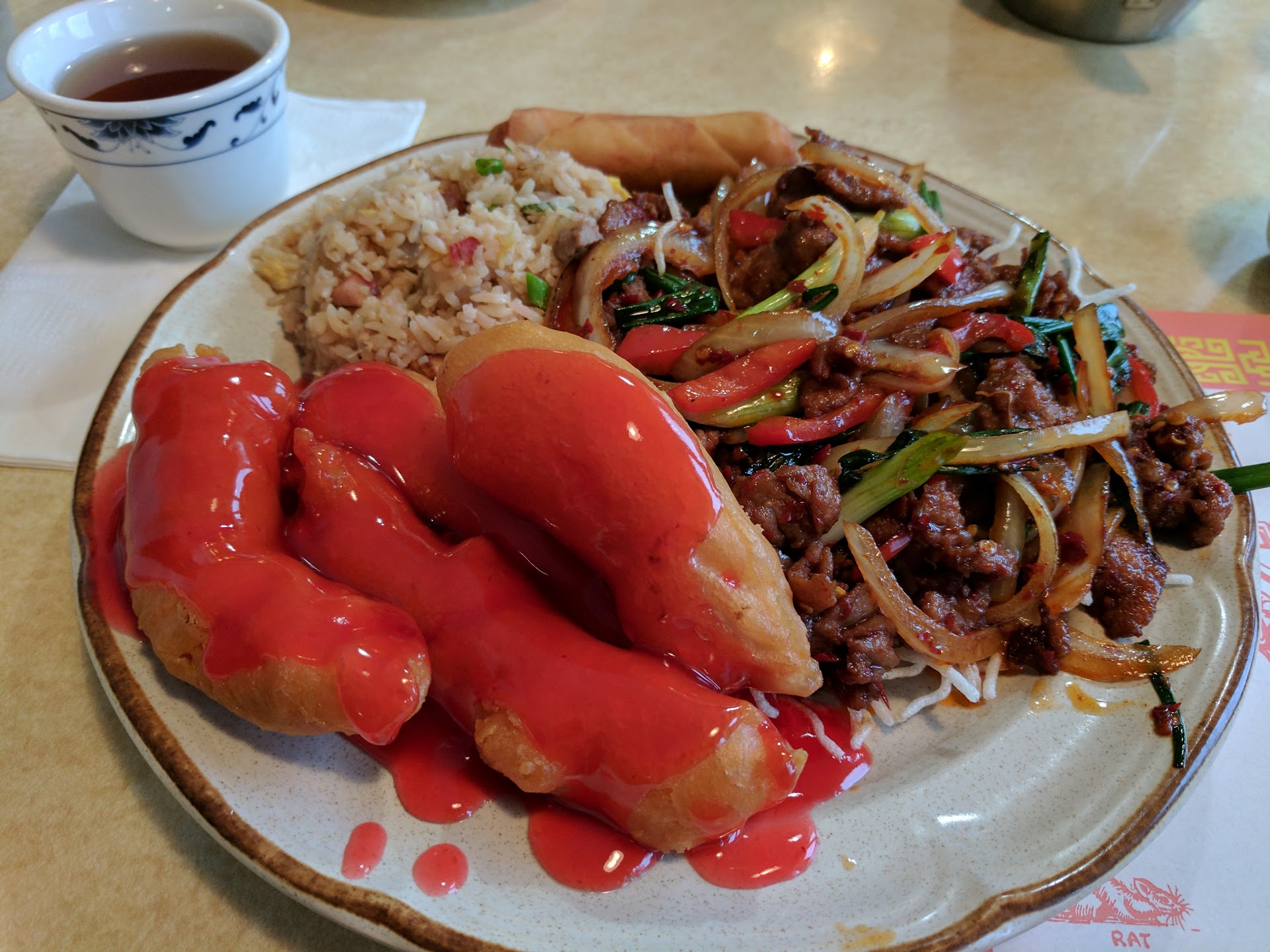 The War Won Ton Soup is bar none a 5 Star. It has excellent flavor with snow peas, carrots hand rolled Wan Tons etc. The price was about $10 and overall an excellent value. The food is very attractive on the plate. This gets a 4 Star.