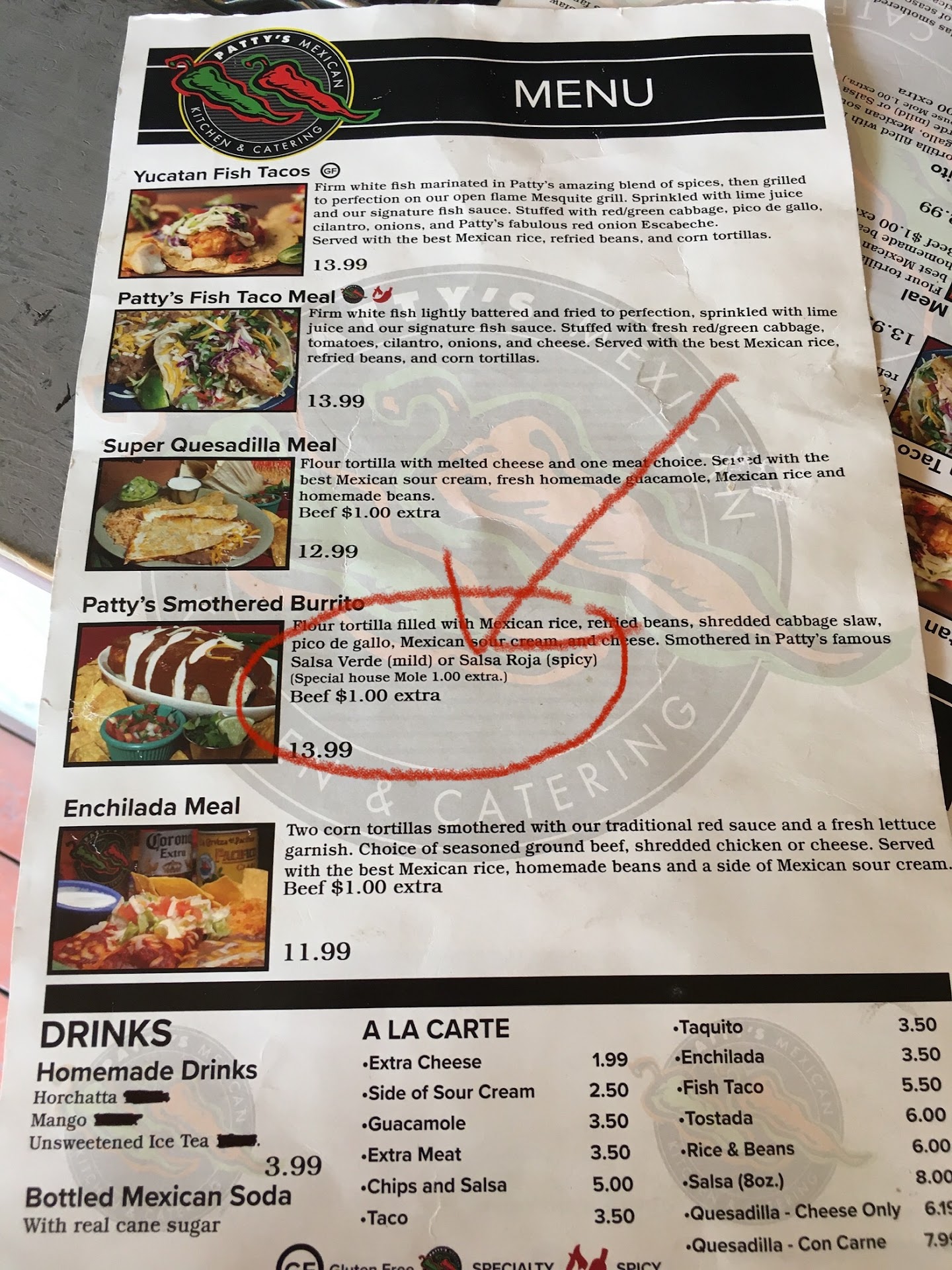 Read moreUPDATE: as of 5/4/24, Patty’s has changed their sign to say “Fish Taco.” I guess they “realized” they were falsely advertising before…either way, it felt dishonest then and feels dishonest now.