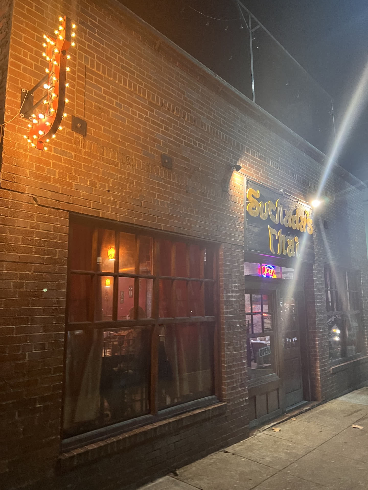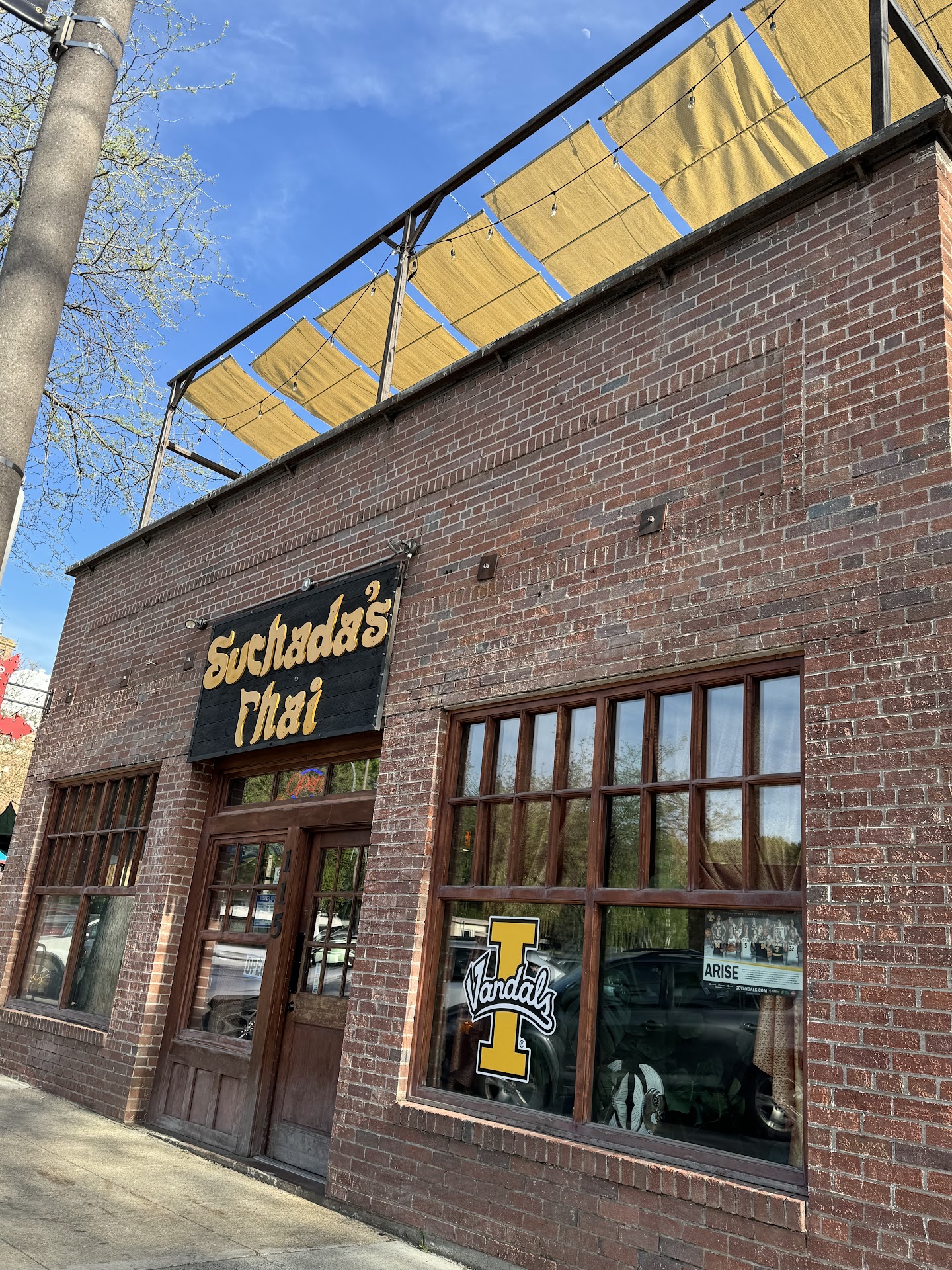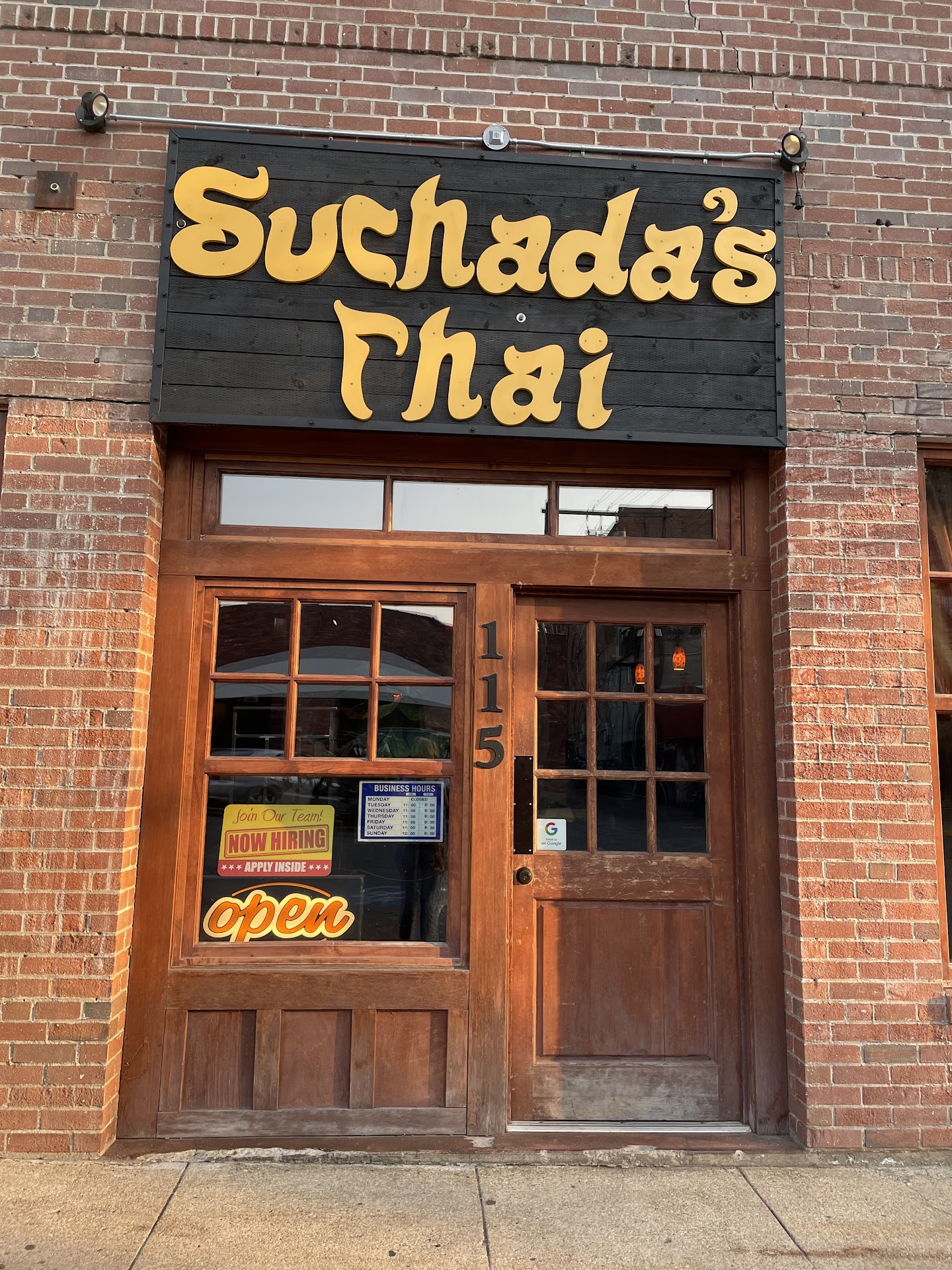 It’s an interesting layout in that you can sit outside in a communal garden area where you can get food from multiple vendors, including Suchada’s. This isn’t immediately clear (or wasn’t to us) since we walked in the front door of the restaurant (and not by the courtyard seating area) and waited to be acknowledged then seated. Once greeted and walked back we saw the outdoor seating and requested to sit outside, since it was a beautiful evening.