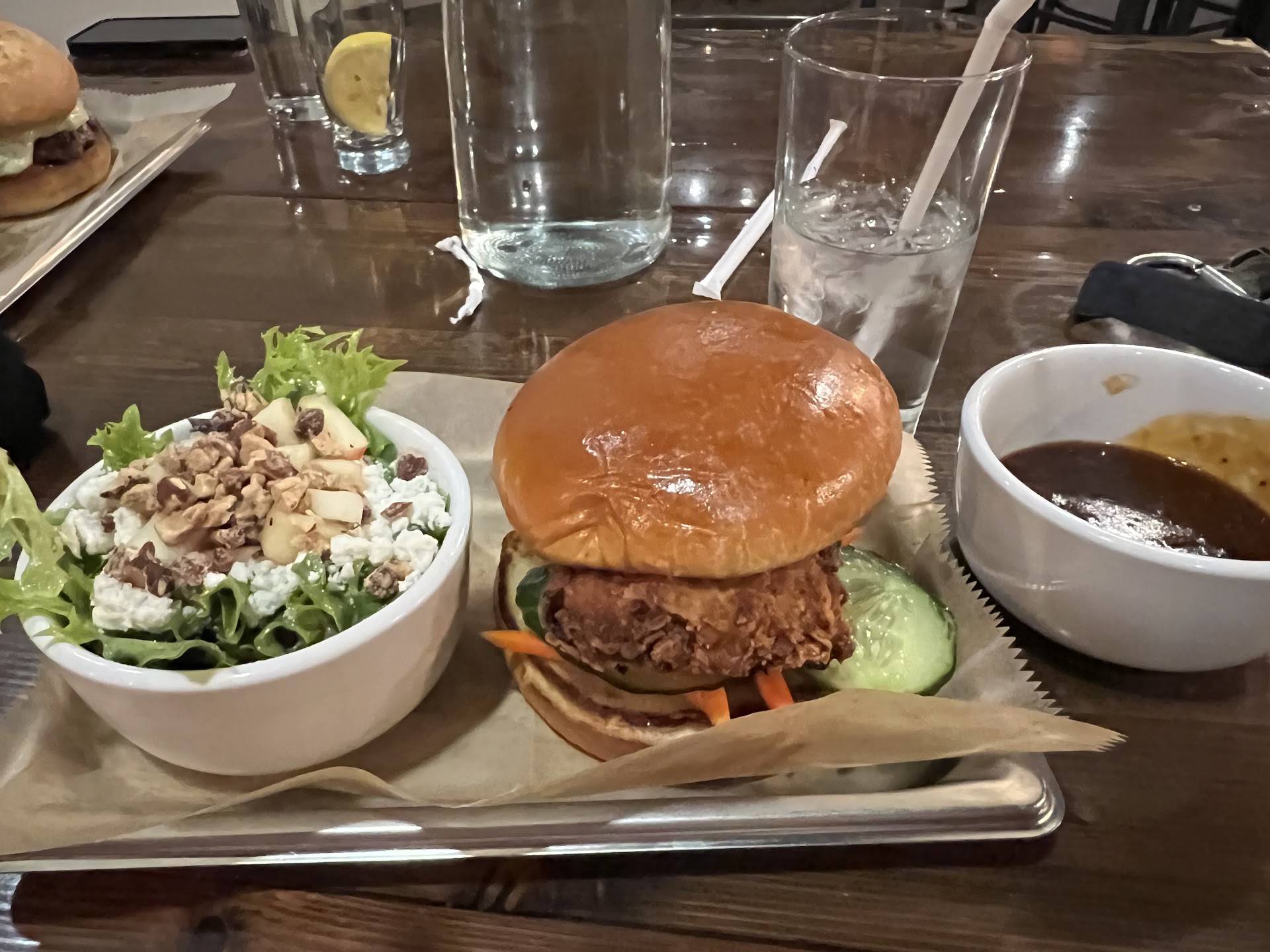 -Service: The server was really nice to us and checked in to refill things but didn't hover (I prefer that). Took a little while to get our check processed, but at that time, things were getting busy.