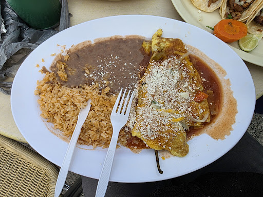 Also got a Chile relleno, which was wrapped in a scrambled egg for some reason. I mean, it's what the menu said, but it was 70% egg, 30% relleno. It didn't even look like a whole chile was used it was so small. Very small portions of rice and beans for the price, which I wouldn't mind if they were at least somewhat flavorful. Corn tortillas that came with it were fine. No plasticware provided....